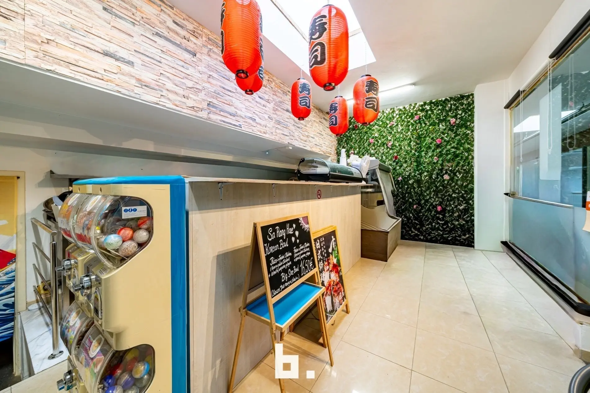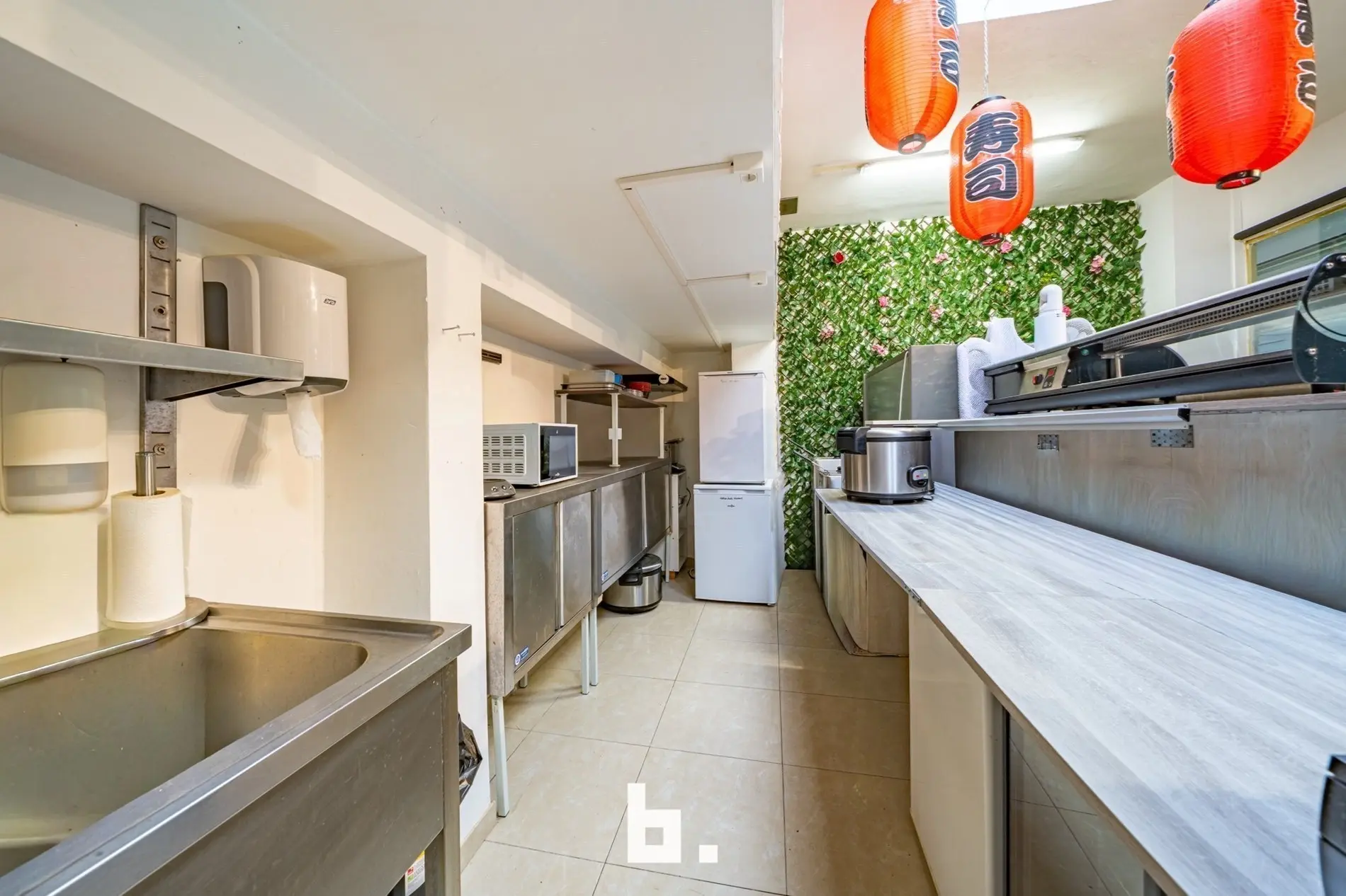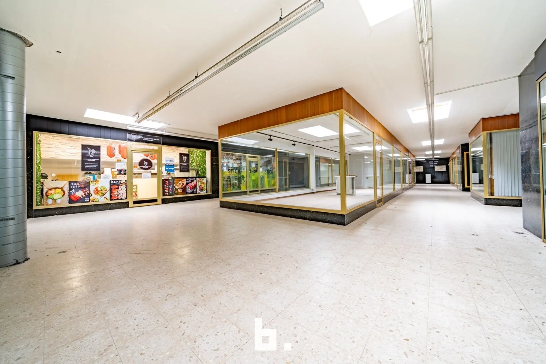 De ruimte werd jarenlang uitgebaat als sushibar met takeaway, wat meteen de uitstekende ligging en visibiliteit bewijs, ook perfect geschikt voor boetiek, kantoor of andere handelsactiviteit.