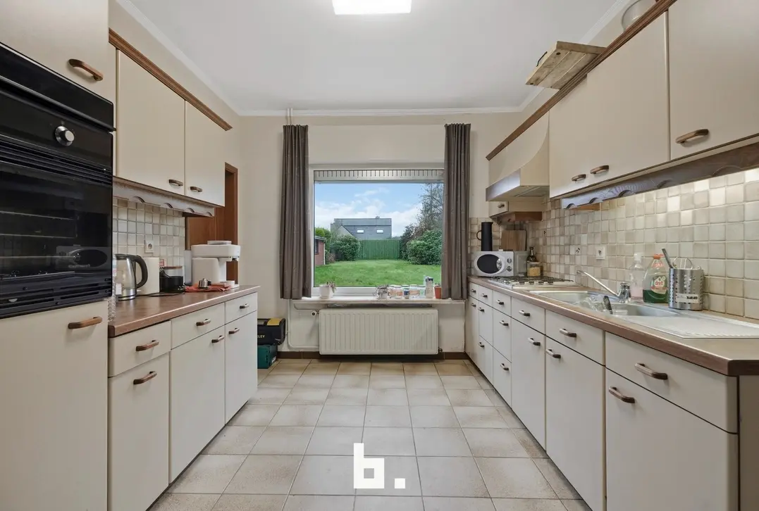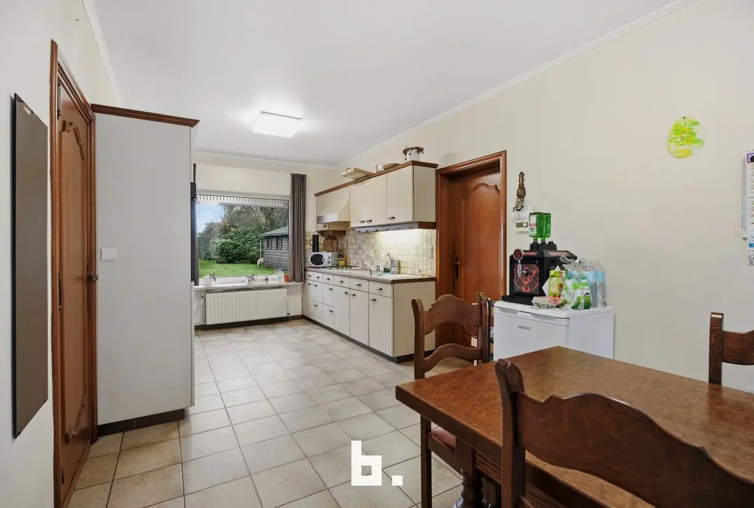 Bij het betreden van de woning komt u in een centrale inkomhal die toegang geeft tot de lichtrijke woonkamer met aangenaam zicht op de groene tuin. Aansluitend vindt u de keuken met eetruimte, gevolgd door een praktische wasplaats, een gastentoilet en een technische ruimte.