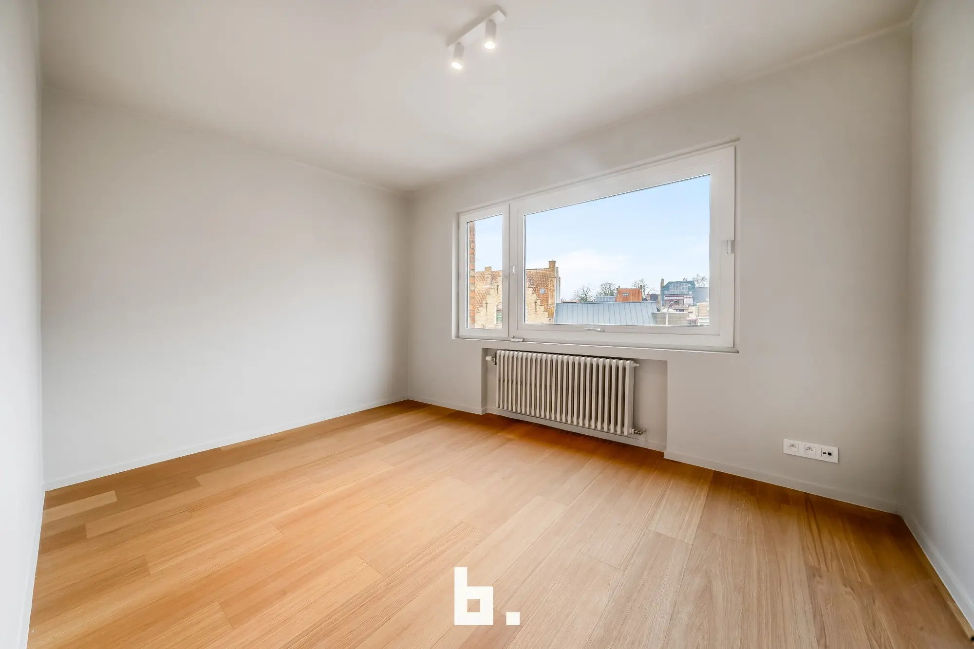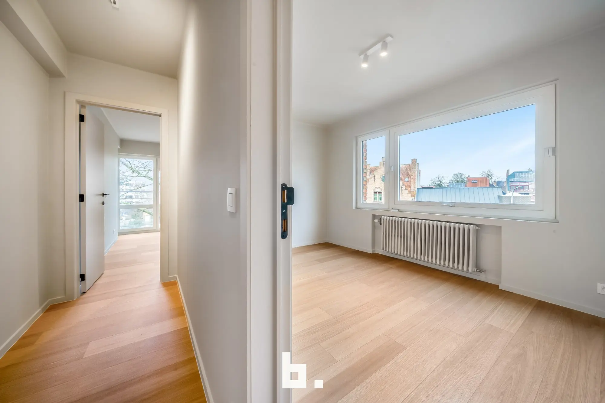 Dit volledig gerenoveerd appartement (106 m²) bevindt zich op de 3e verdieping van de residentie "Select". Rustige ligging met maximale bereikbaarheid (vlakbij winkels, scholen, Expresweg, station, centrum Brugge...). De indeling is als volgt: inkomhal, gastentoilet, lichtrijke woonkamer, keuken (kookplaat, dampkap, spoelbak en vaatwasser), berging (aansluiting wasmachine/droogkast) terras aanpalend aan woonkamer en keuken, 2 ruime slaapkamers, bureau/dressing, badkamer (inloopdouche, wastafelmeubel). private kelderberging. Garage inbegrepen.