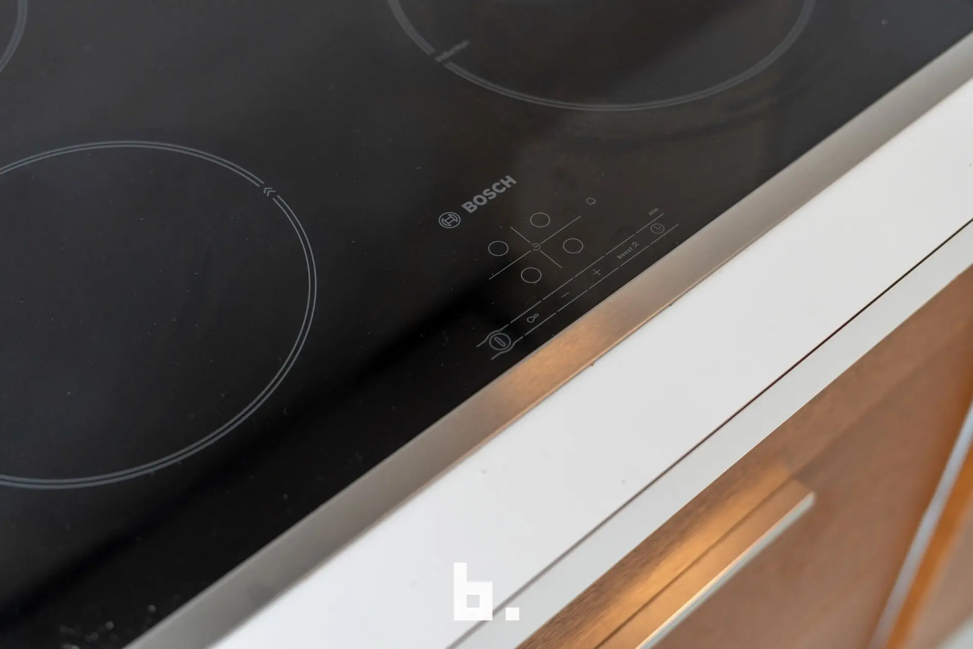 Bij binnenkomst wordt u verwelkomd in een aparte inkomhal die toegang geeft tot de ruime leefruimte met open keuken. De keuken is praktisch ingericht met een kookeiland, vaatwasser en keramische kookplaat. De grote raampartijen zorgen voor veel natuurlijk licht en een aangenaam ruimtegevoel.