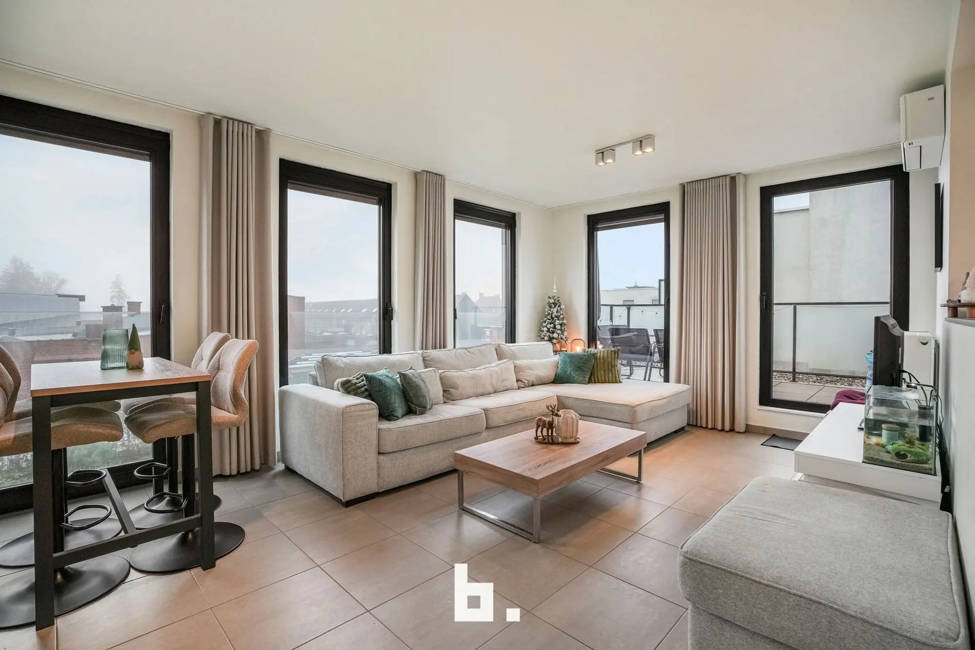 Bij het binnenkomen valt meteen de verzorgde en harmonieuze uitstraling op. Het appartement werd recent volledig opnieuw geschilderd en is uitgerust met op maat gemaakte inbouwkasten die niet alleen esthetisch, maar ook uiterst praktisch zijn. De lichtrijke leefruimte sluit naadloos aan op de volledig uitgeruste keuken en vormt een aangename plek om te ontspannen of gasten te ontvangen.