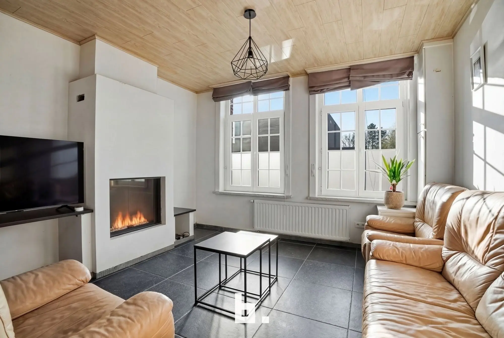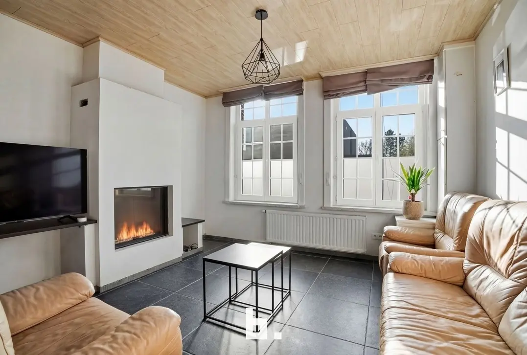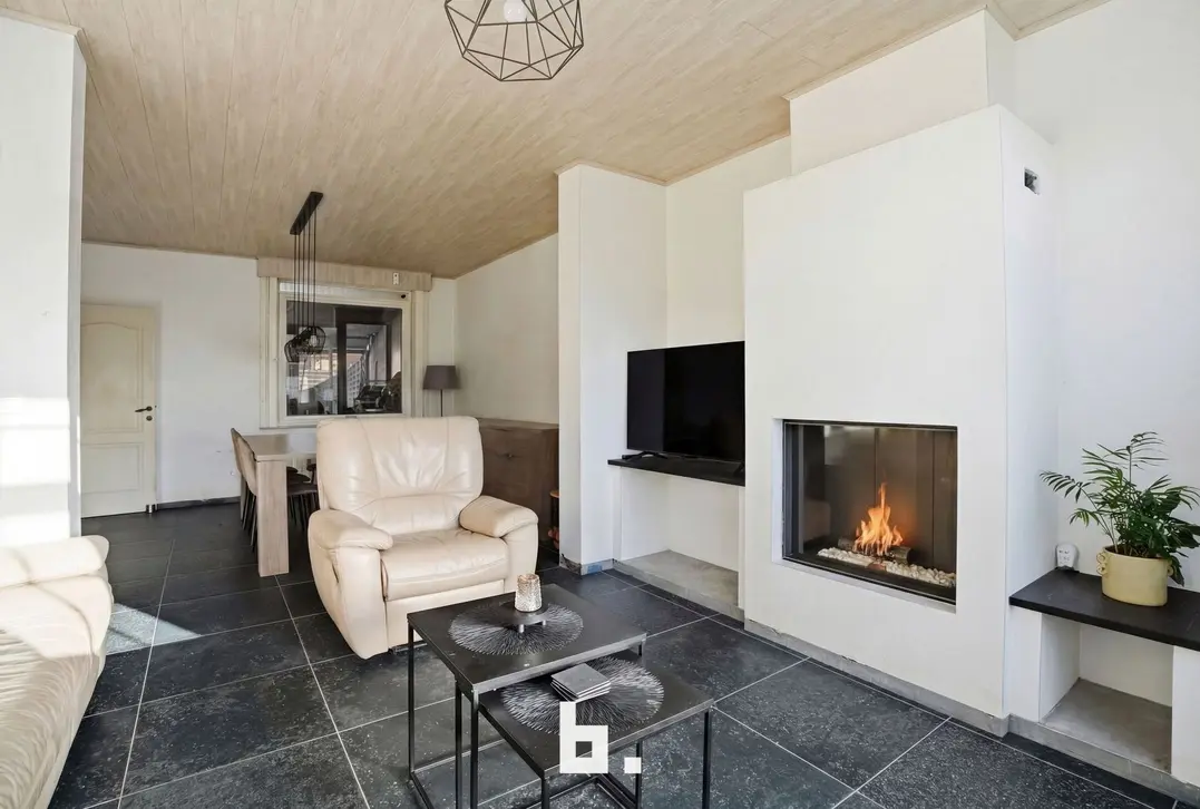 Binnen wordt u verwelkomd door de ruime lichtrijke inkomhal die meteen ook toegang biedt tot de gezellige leefruimte met sfeerhaard. Verder op het gelijkvloers vindt u nog de volledig uitgeruste kwaliteitskeuken en volledig ingerichte badkamer met inloopdouche. De woning beschikt verder op het eerste verdiep over twee ruime slaapkamers (waarvan 1 met en suite dressing) op het tweede verdiep vindt u ook volledig geïsoleerde master bedroom.