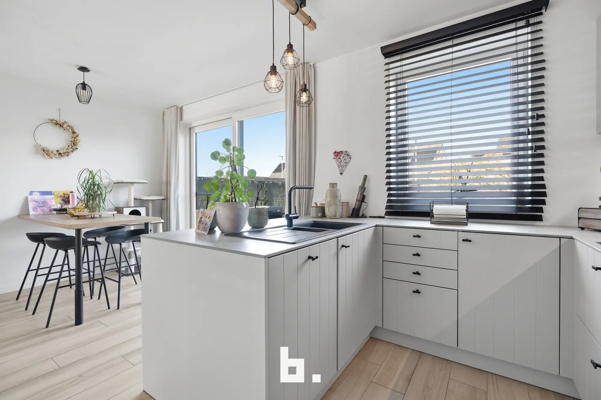 De woning verwelkomt je met een inkomhal en gastentoilet, waarna je doorloopt naar de lichtrijke leefruimte met open, volledig uitgeruste keuken. Dankzij de grote raampartijen geniet je hier van een aangename lichtinval en een mooi zicht op de tuin. Aansluitend is er een praktische berging/wasplaats.