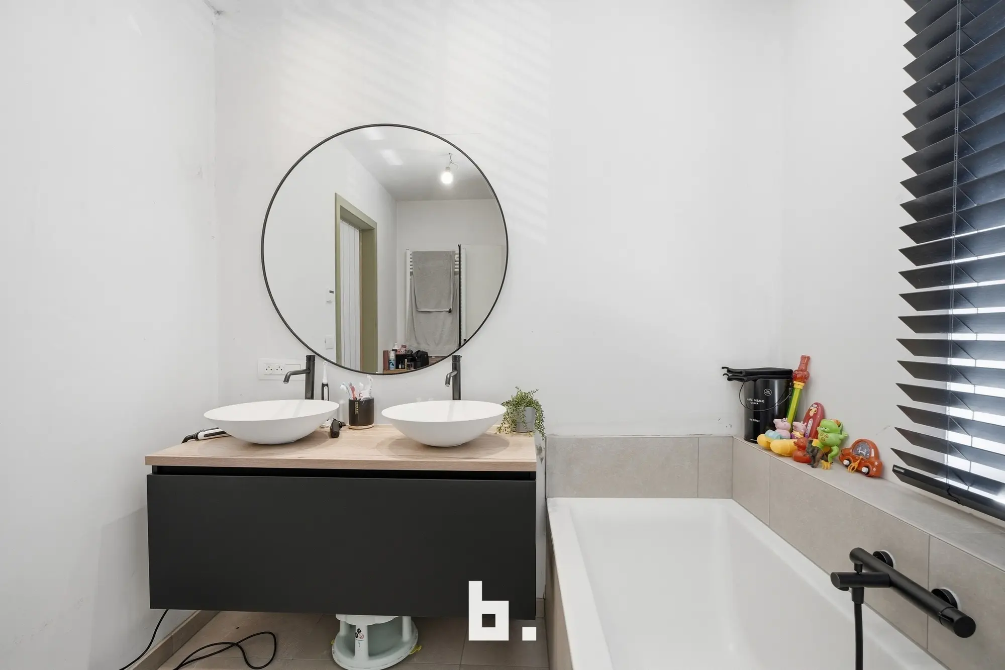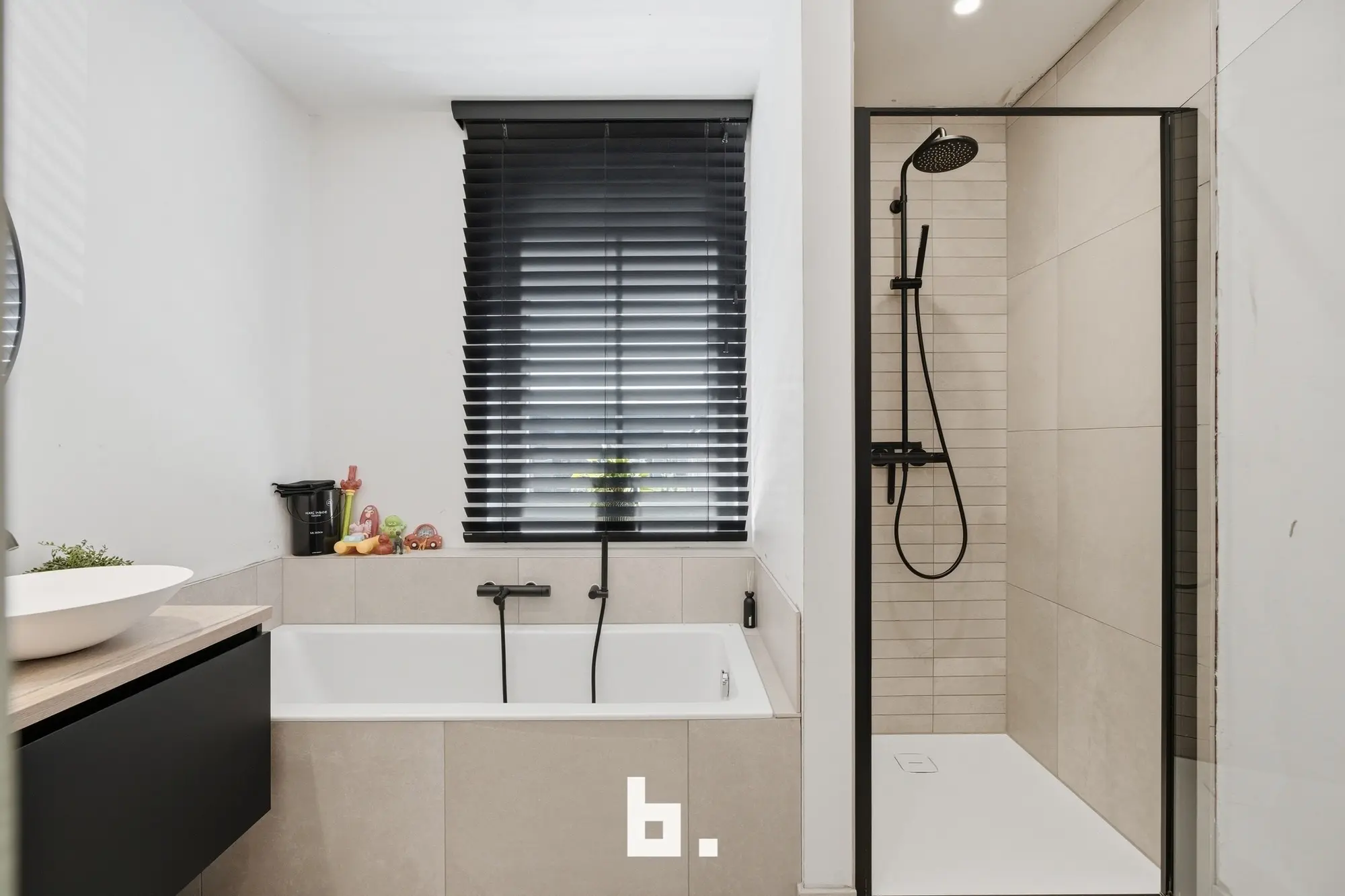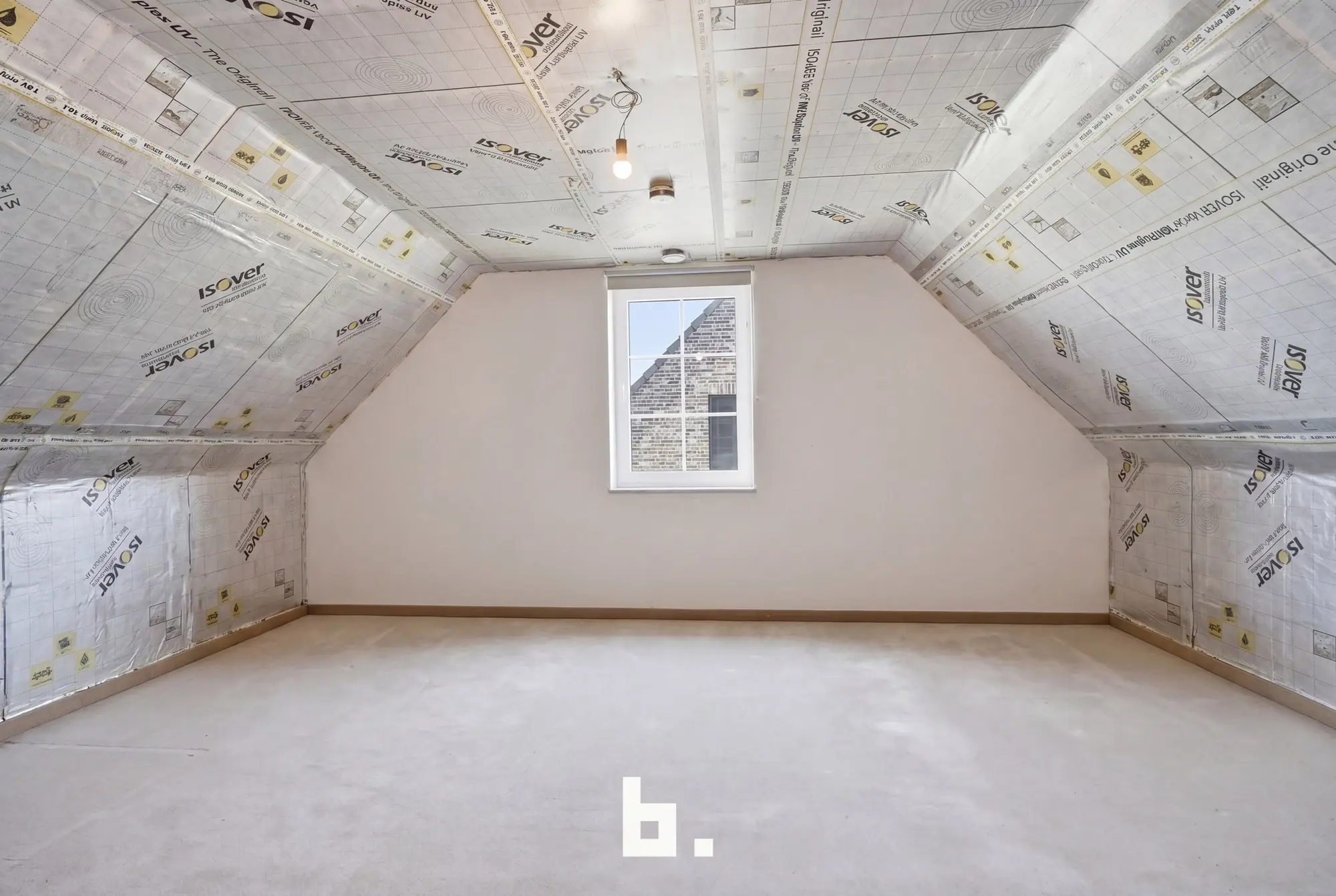 Op de eerste verdieping bevinden zich drie volwaardige slaapkamers en een stijlvolle badkamer met ligbad, douche en dubbele lavabo. De zolderverdieping biedt bovendien tal van mogelijkheden: ideaal als extra slaapkamer, bureau of hobbyruimte.