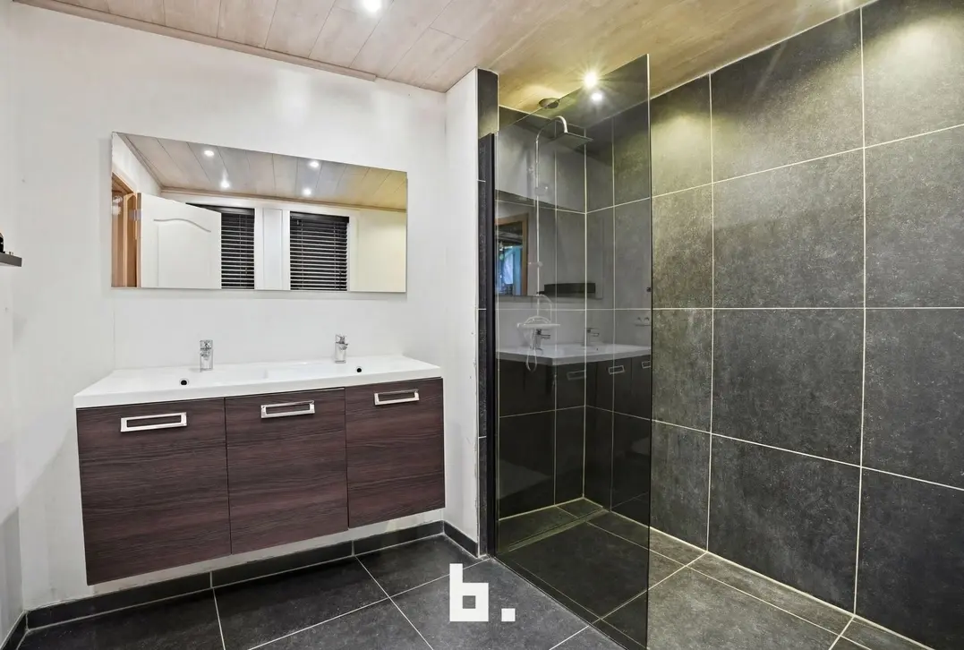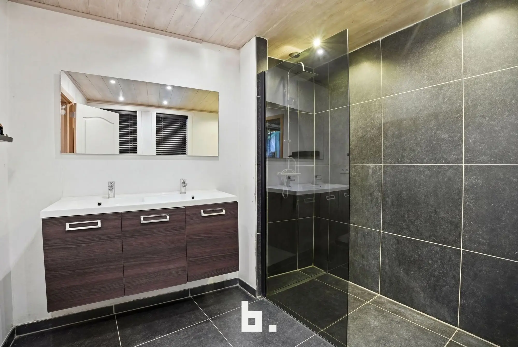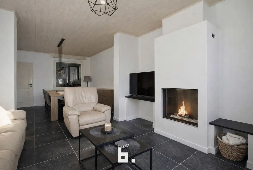 Binnen wordt u verwelkomd door de ruime lichtrijke inkomhal die meteen ook toegang biedt tot de gezellige leefruimte met sfeerhaard. Verder op het gelijkvloers vindt u nog de volledig uitgeruste kwaliteitskeuken en volledig ingerichte badkamer met inloopdouche. De woning beschikt verder op het eerste verdiep over twee ruime slaapkamers (waarvan 1 met en suite dressing) op het tweede verdiep vindt u ook volledig geïsoleerde master bedroom.