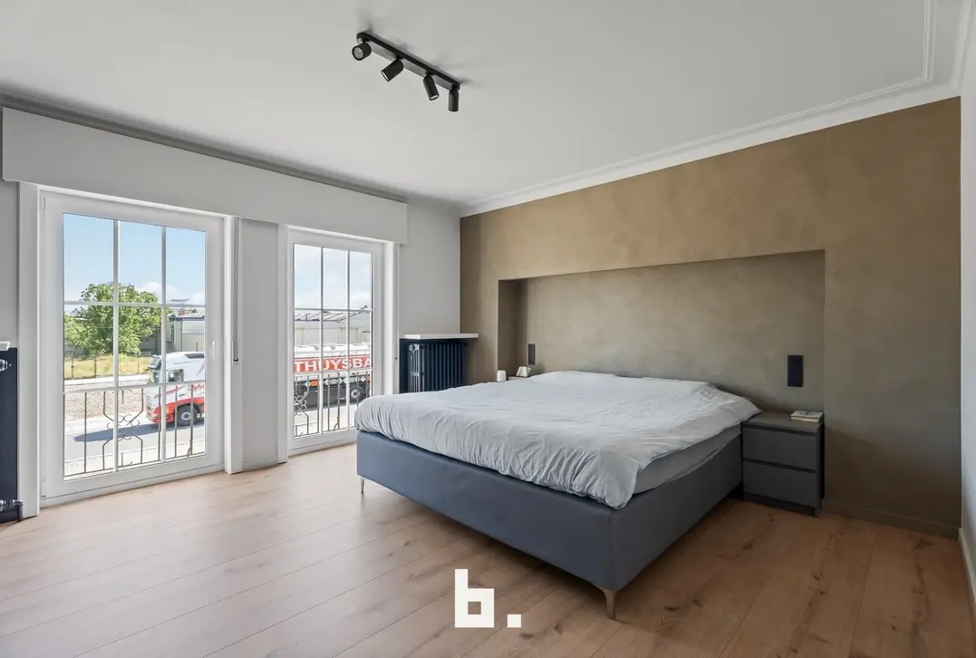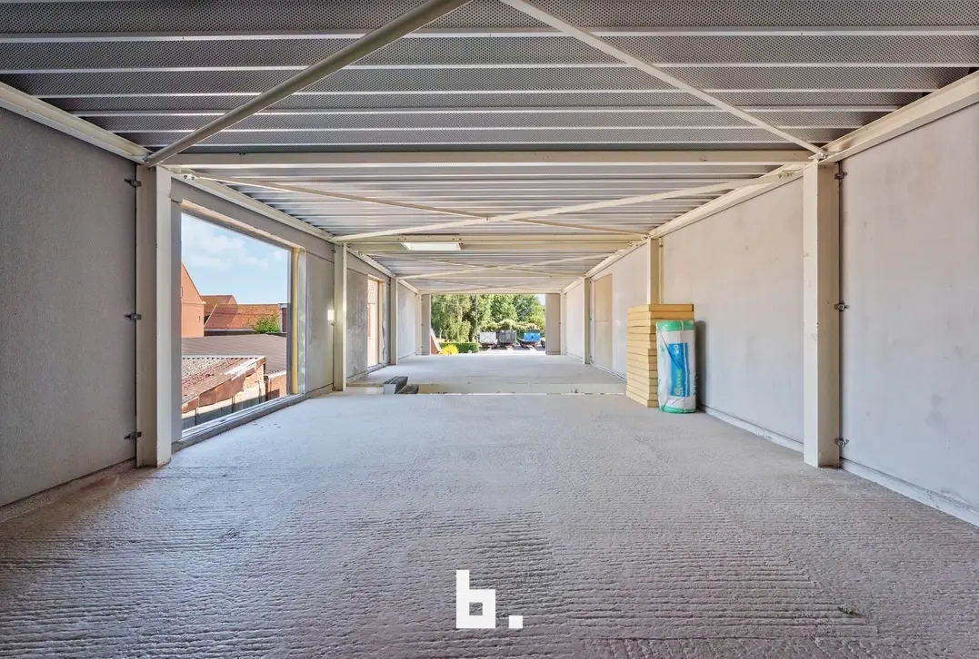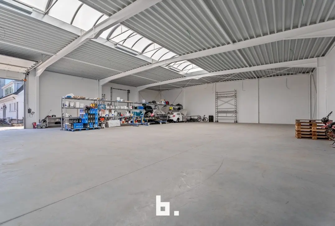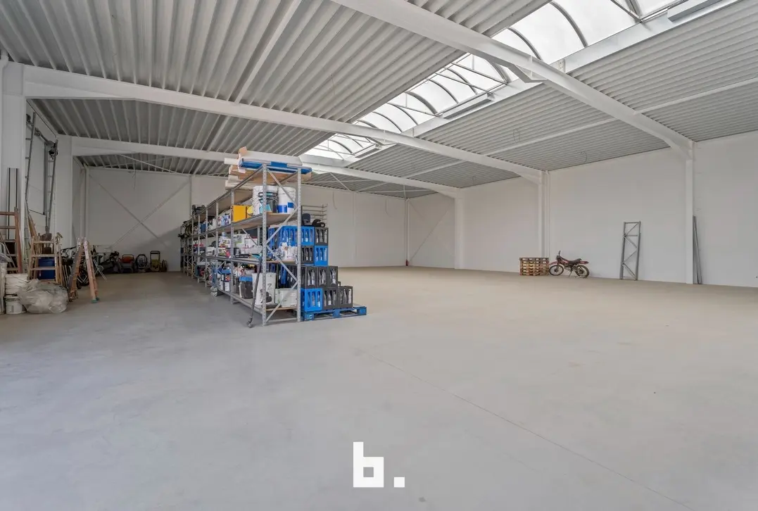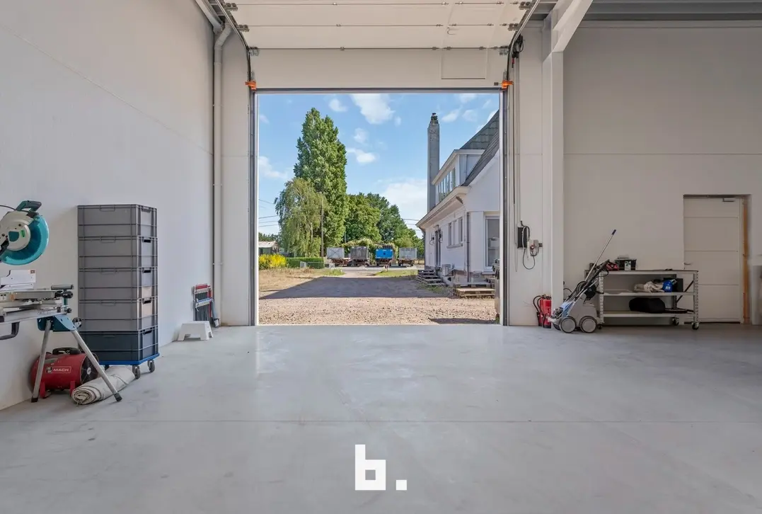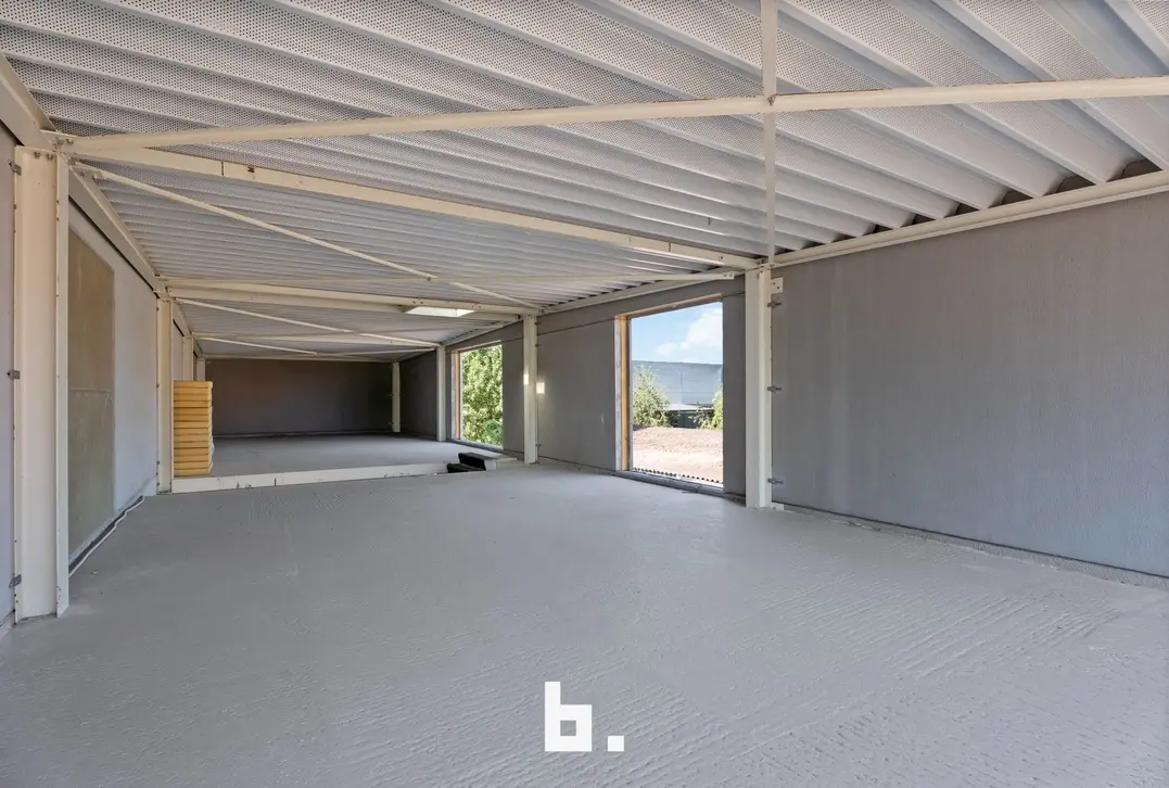 Naast de woning beschikt dit eigendom over een recente loods van maar liefst 482 m² (20,4 m x 23,64 m), volledig geïsoleerd en uitgerust met vloerverwarming. De loods is toegankelijk via een automatische sectionale poort van 4 meter hoog én een tweede poort van 2,24 meter. Aansluitend bevindt zich een bureel- of opslagruimte van 155 m² op het gelijkvloers, met nog eens 155 m² op de verdieping – klaar om verder afgewerkt te worden naar eigen wensen.