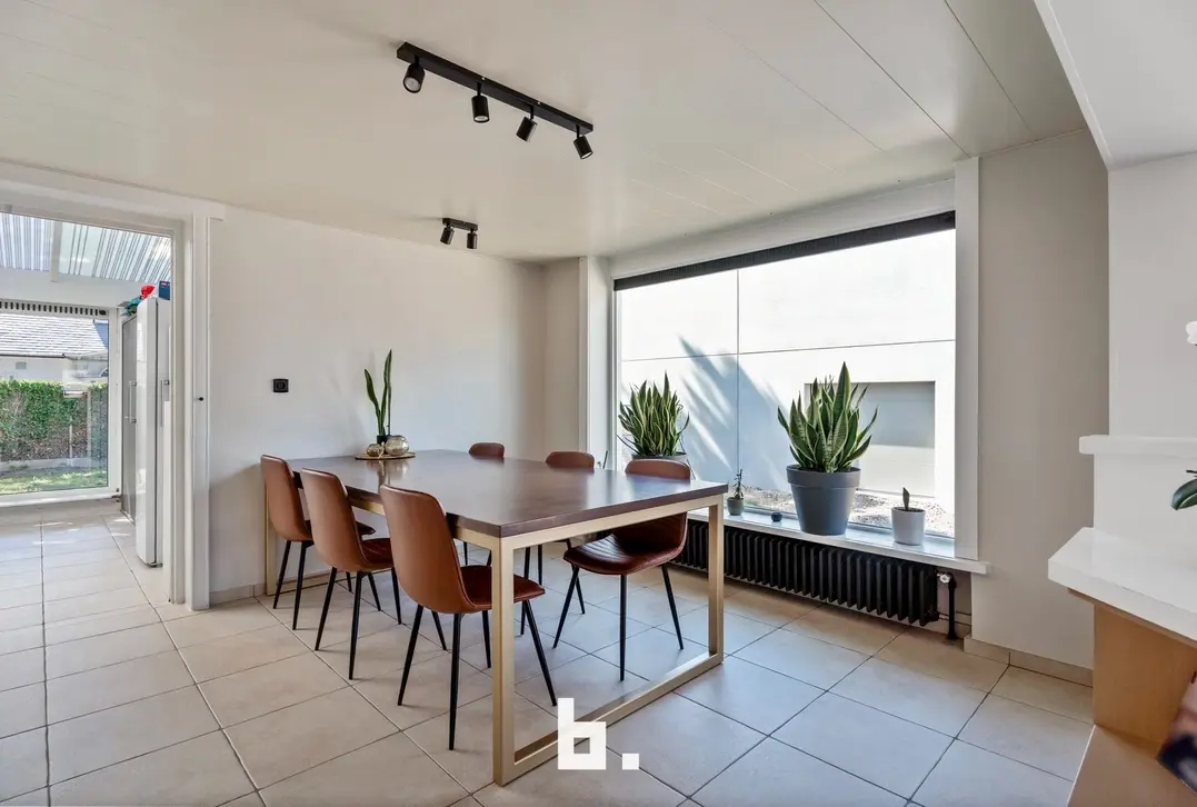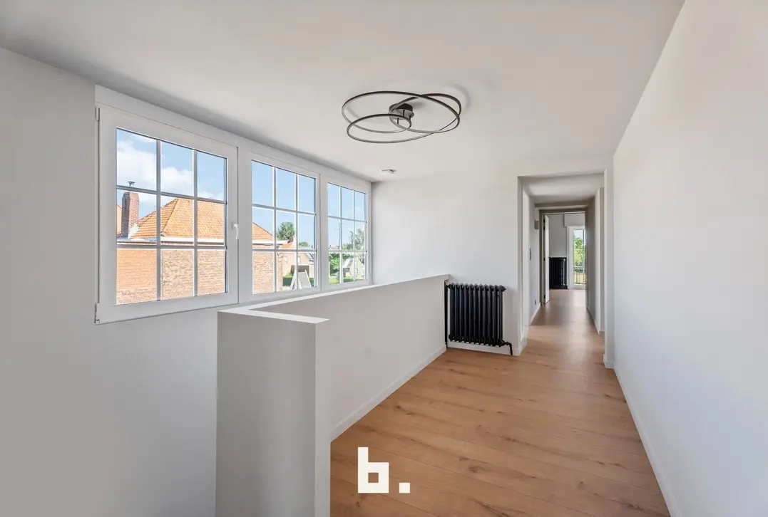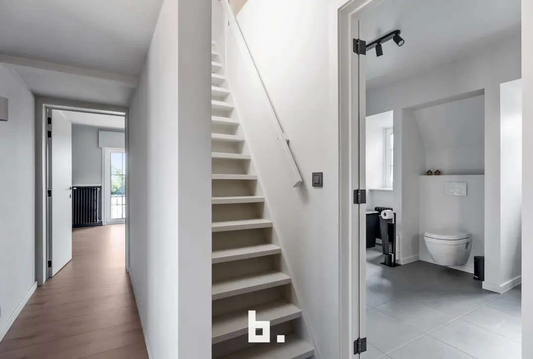 Bij het betreden van deze ruime woning komt u binnen in een aangename inkomhal met vestiaire en gastentoilet – een verzorgde eerste indruk die meteen uitnodigt om verder te ontdekken.