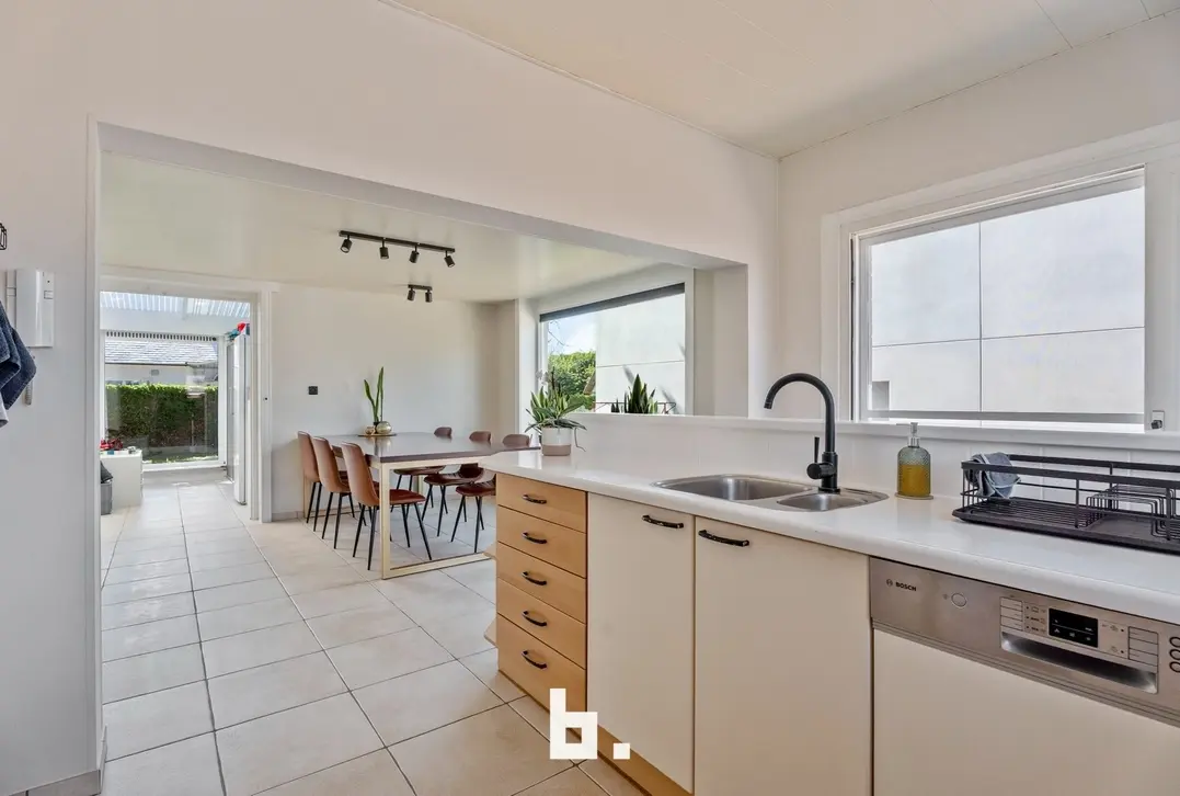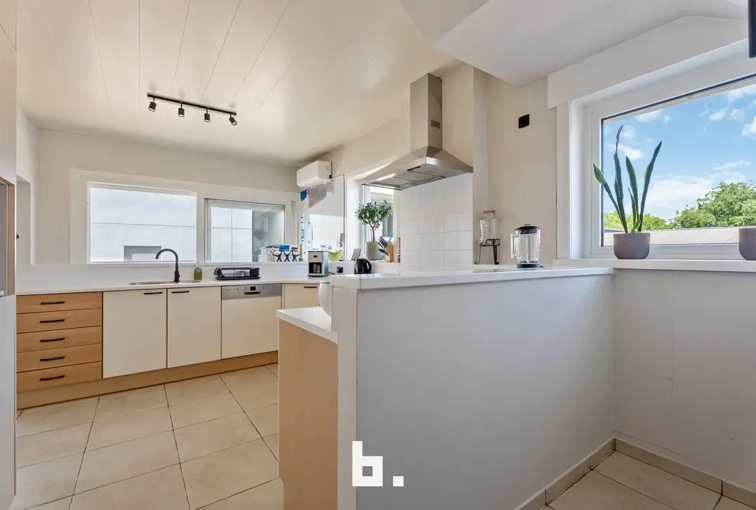 Aansluitend vindt u de volledig uitgeruste keuken van 36 m², voorzien van alle moderne toestellen zoals een keramische kookplaat, dampkap, koelkast, vaatwasser, microgolf en oven. De royale ontbijthoek maakt dit de perfecte plek om samen de dag te starten.