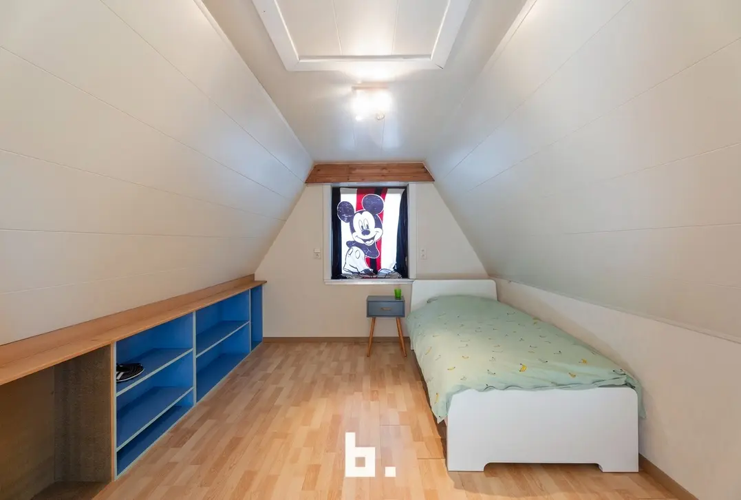 De tweede verdieping telt nog twee extra slaapkamers (11 m² en 13 m²) en een nachthal met ingemaakte kasten. Een apart toilet zorgt ook hier voor extra comfort. Tot slot is er nog een grote zolderruimte die zich uitstrekt over de volledige woning – perfect als opslagruimte of voor creatieve invulling.