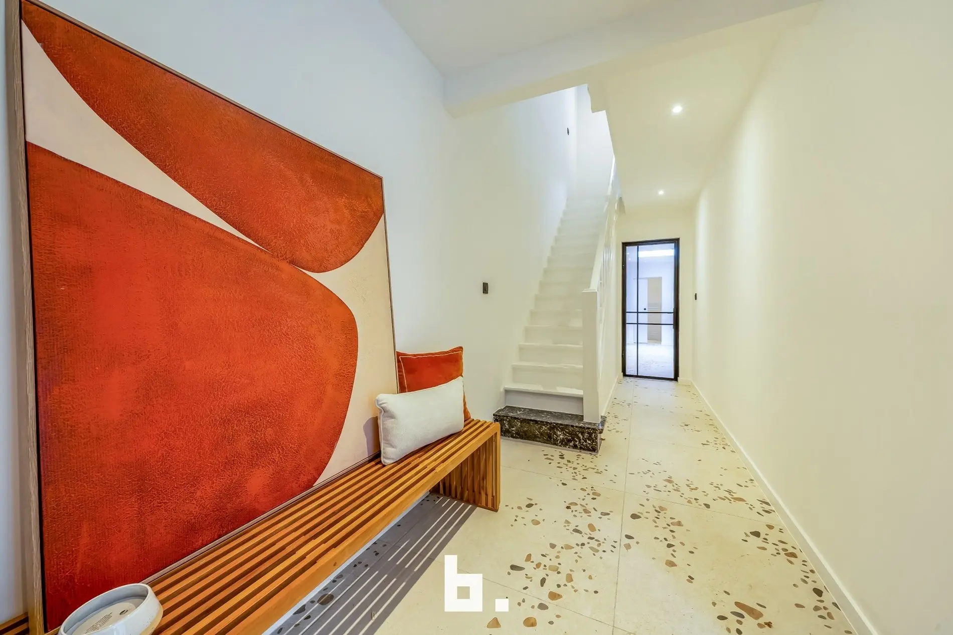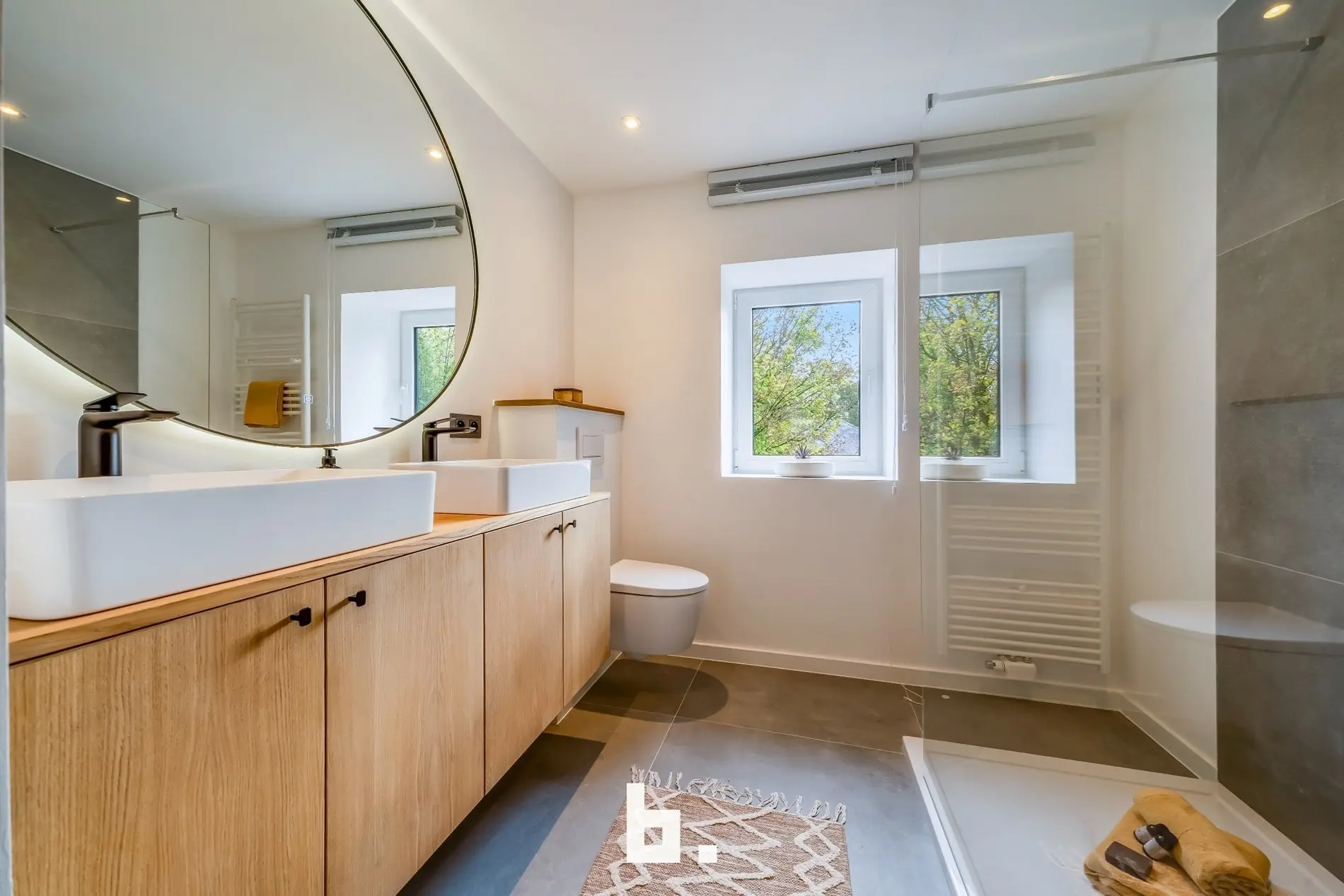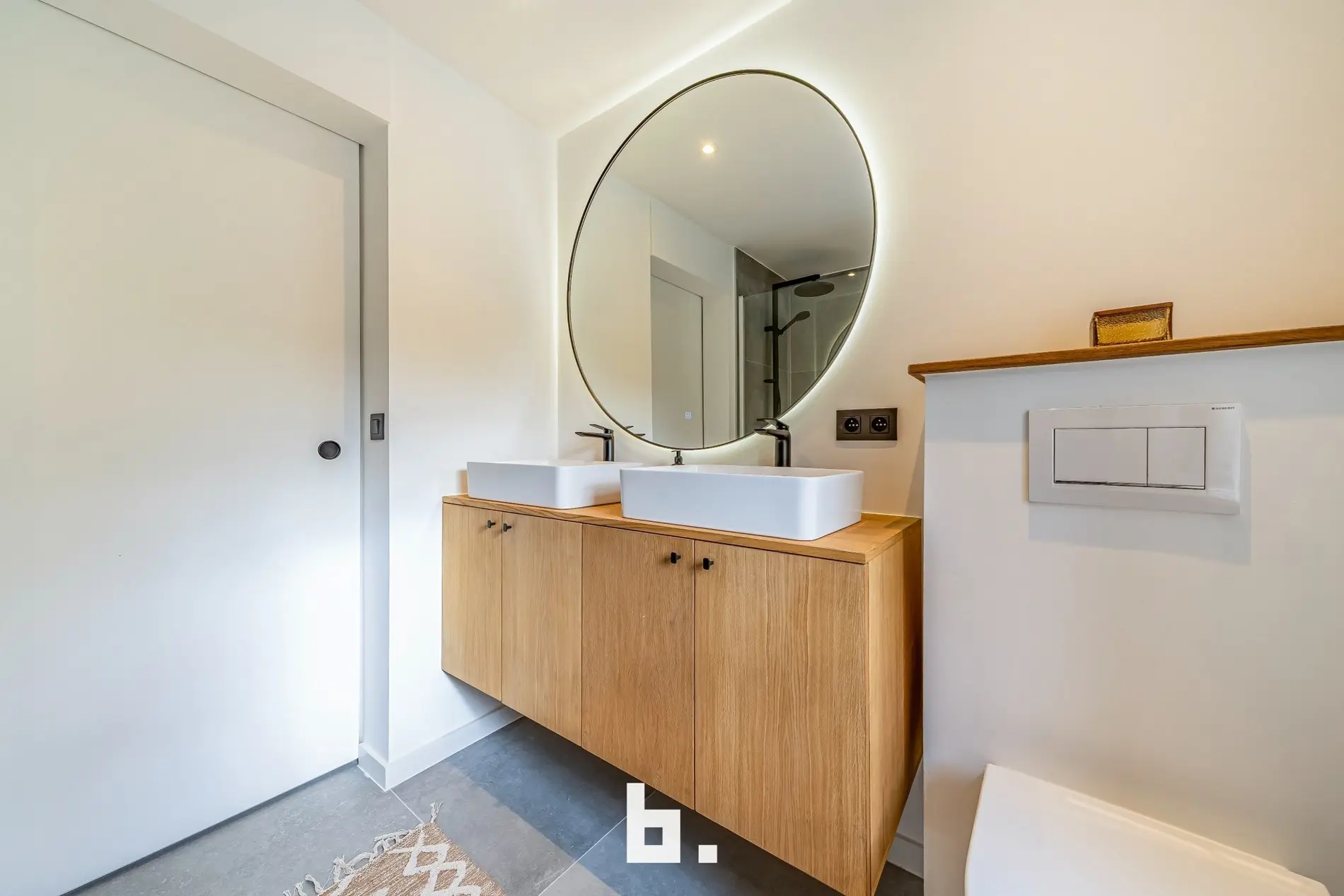 Deze instapklare woning bevindt zich op een fantastische ligging in Sint-Kruis. Rustige ligging met maximale bereikbaarheid (nabij supermarkten, winkelketens en lokale handelszaken, scholen, crèches, station, centrum Brugge ...). De indeling is als volgt: BENEDENVERDIEPING: Inkomhal, lichtrijke woonkamer met ingerichte keuken (kookplaat, ingebouwde dampkap, oven, microgolfoven, spoelbak, vaatwasser), aansluiting wasmachine/droogkast, toilet. BOVENVERDIEPING: 2 ruime slaapkamers, badkamer (inloopdouche, wastafelmeubel, handdoekradiator en toilet). ZOLDERVERDIEPING: Ruime kamer met bad. BUITENOMGEVING: Tuin
