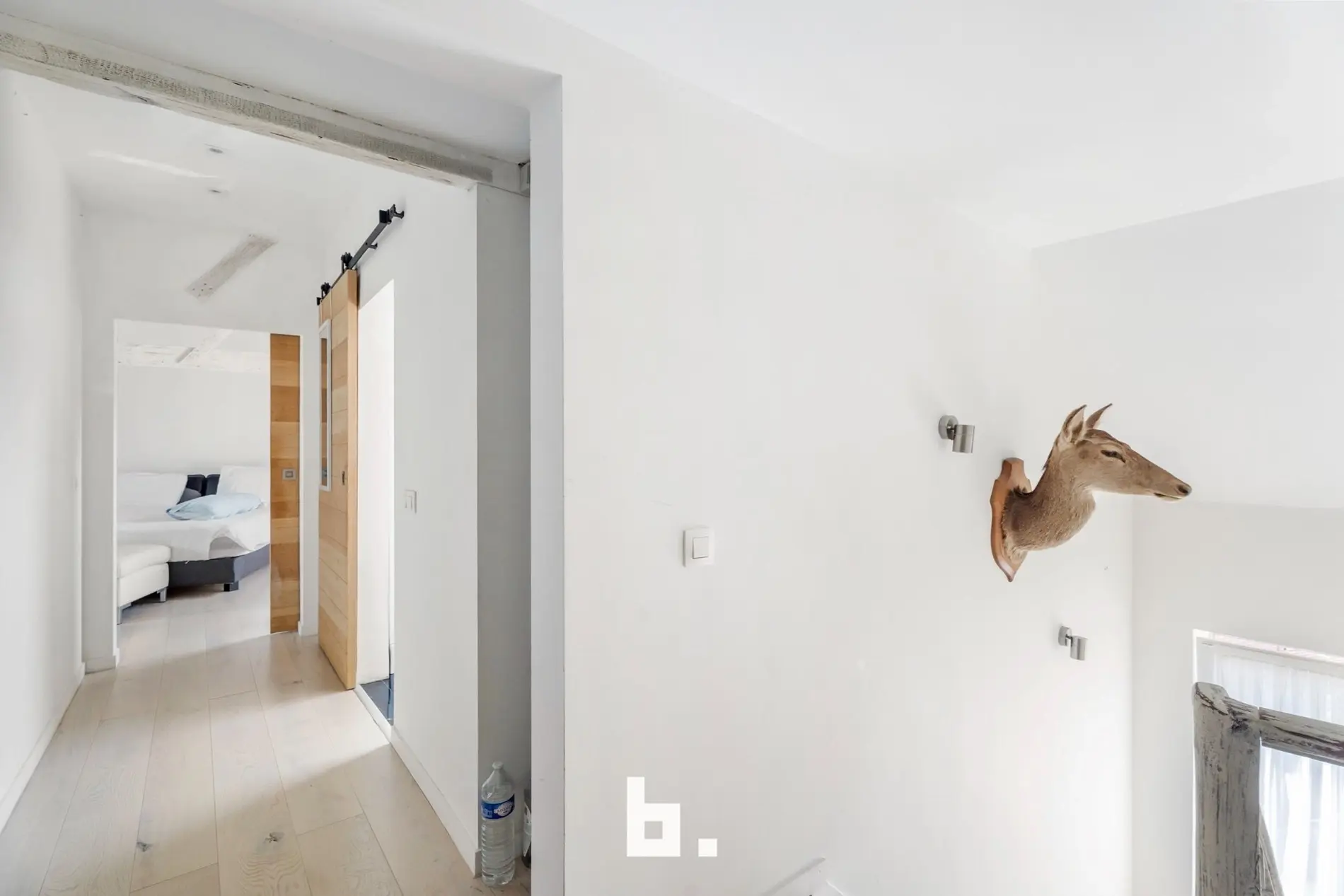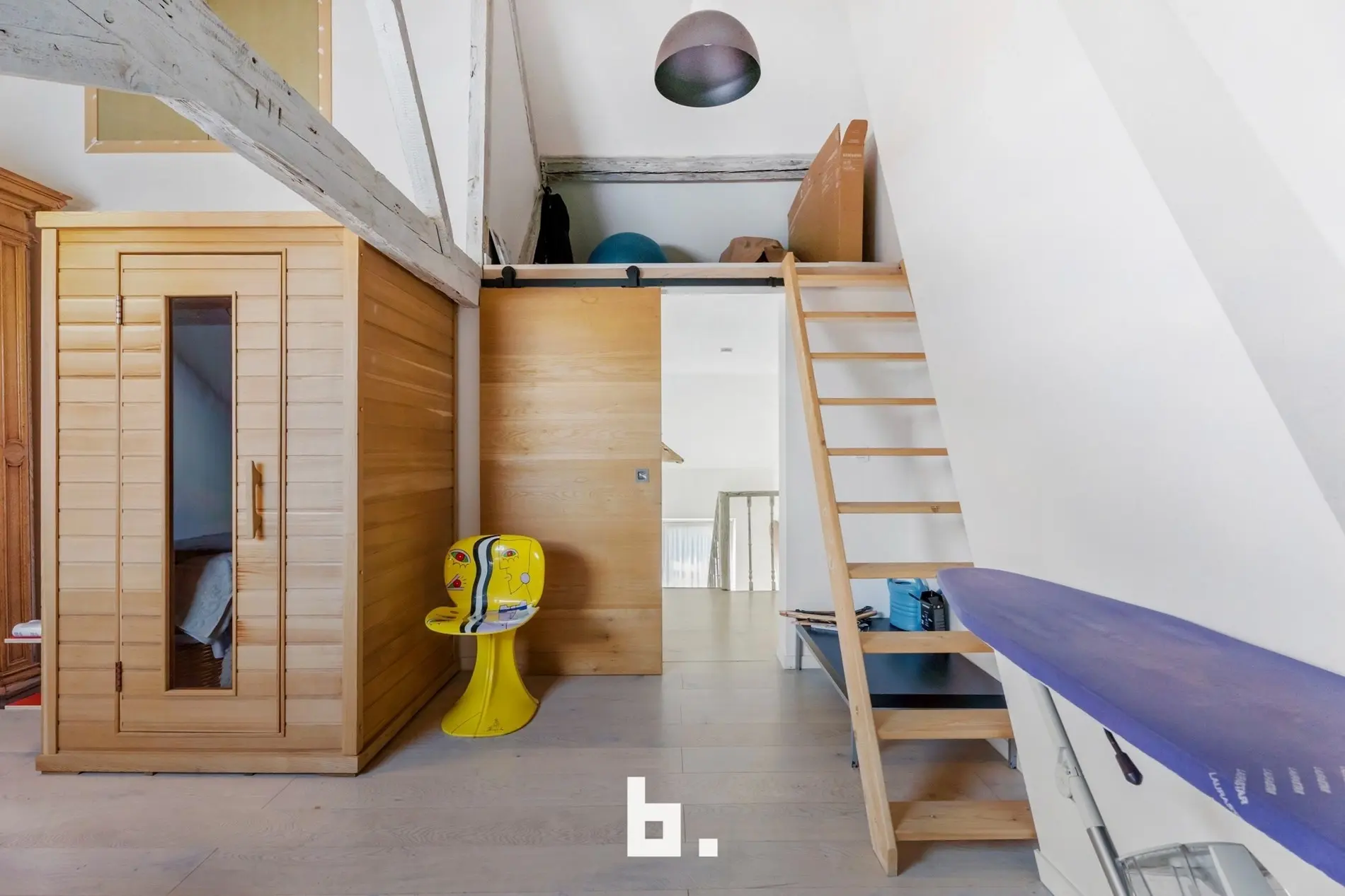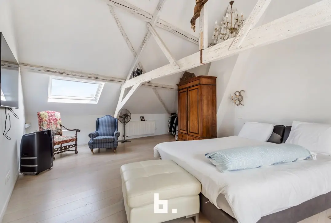 De tweede verdieping herbergt de master bedroom, een extra slaapkamer met mezzanine (ideaal als kinderkamer, bureauruimte of logeerkamer) en een tweede, moderne badkamer met dubbele wastafel, toilet en douche.