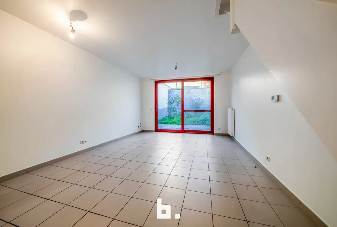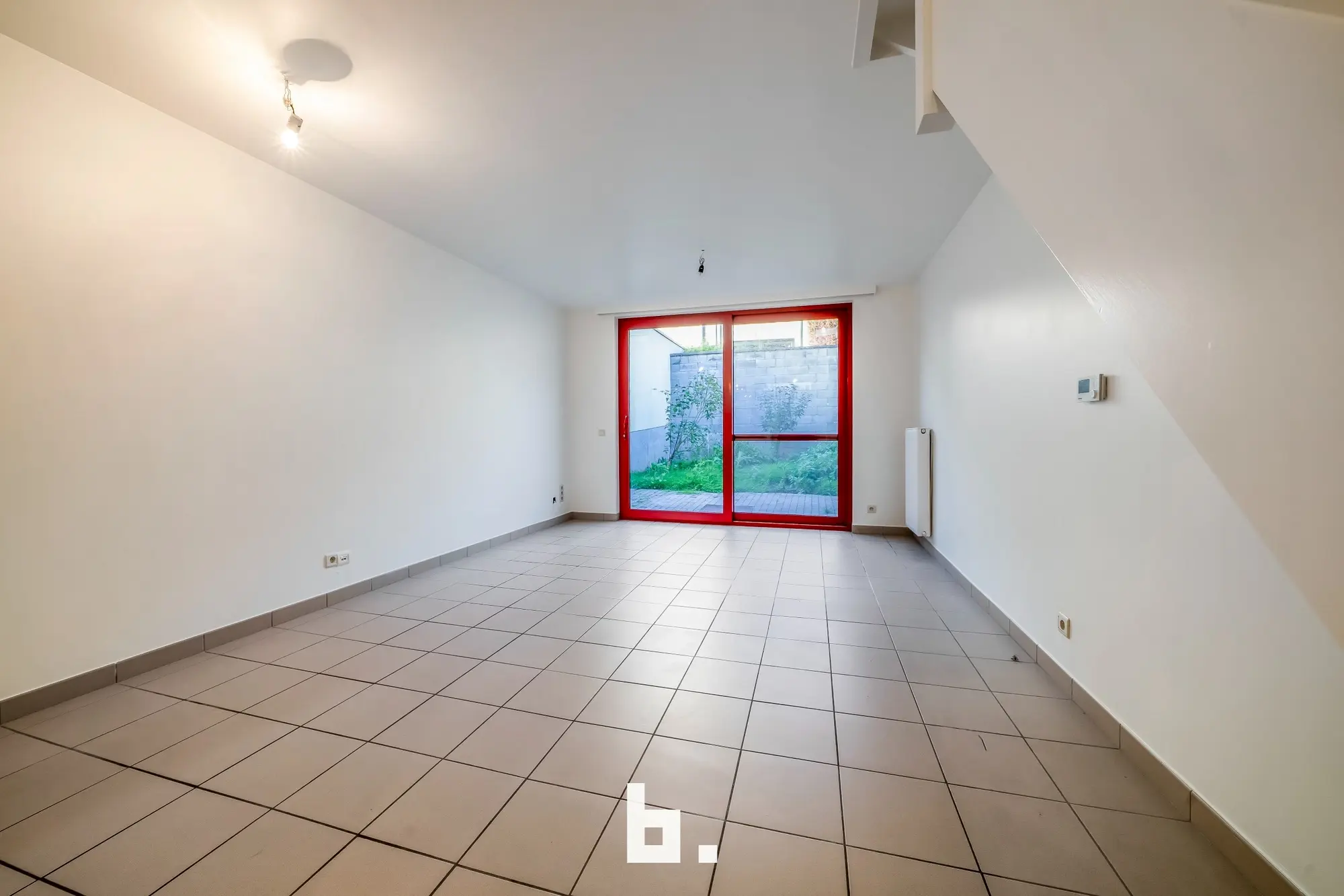 Via de inkomhal met toilet en traphal kom je binnen in een gezellige woonkamer met open, ingerichte keuken. De keuken beschikt over een dampkap, elektrische kookplaat, oven en koelkast. Aansluitend is er een zonnig terras met koer/binnenpatio – een heerlijk plekje om te ontspannen in alle rust.