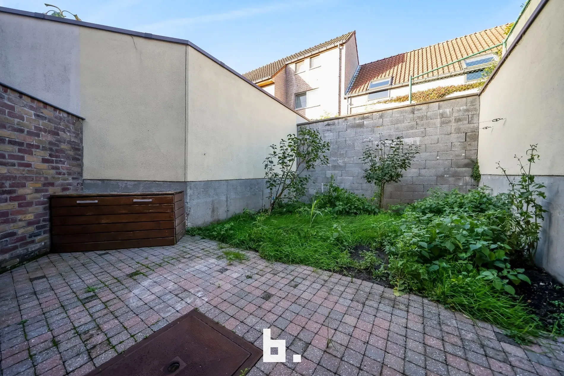 Via de inkomhal met toilet en traphal kom je binnen in een gezellige woonkamer met open, ingerichte keuken. De keuken is uitgerust met een dampkap, elektrische kookplaat, oven en koelkast. Aansluitend bevindt zich een zonnig terras met koer/binnenpatio – een heerlijk plekje om in alle rust te ontspannen.