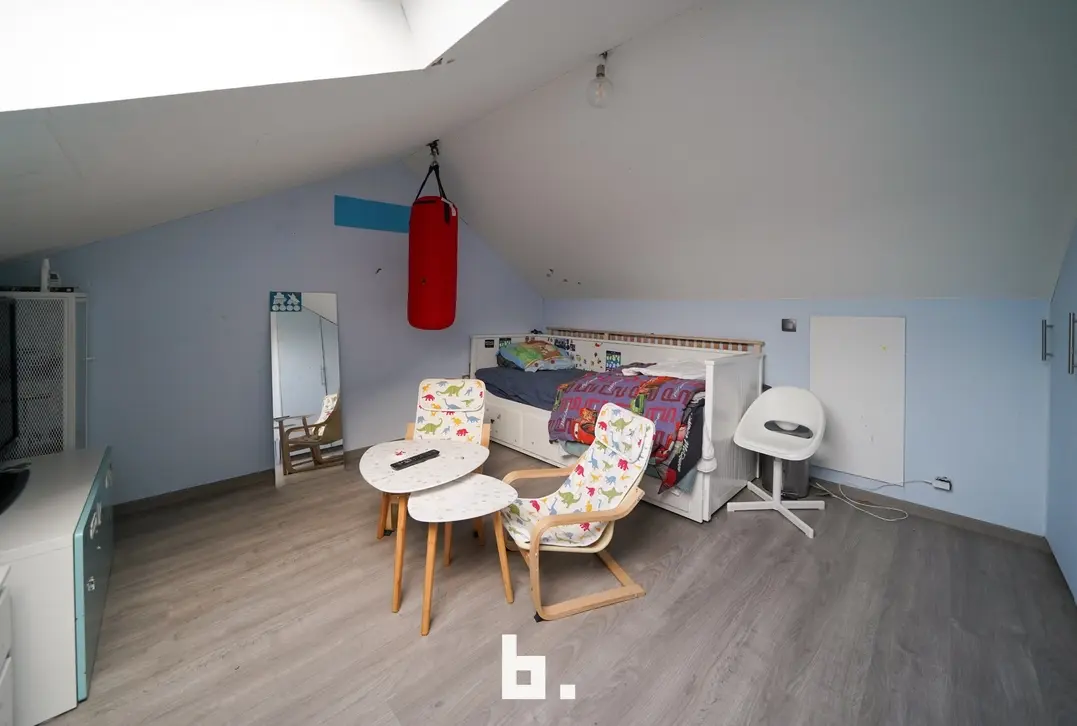 De woning is volledig instapklaar. De volledige benedenverdieping werd recent vernieuwd met een moderne open keuken, een luxueuze badkamer met inloopdouche, dubbele wastafel en toilet, en een nieuwe, doorlopende tegelvloer met vloerverwarming. Boven zijn er drie volwaardige slaapkamers en een kleine slaapkamer.