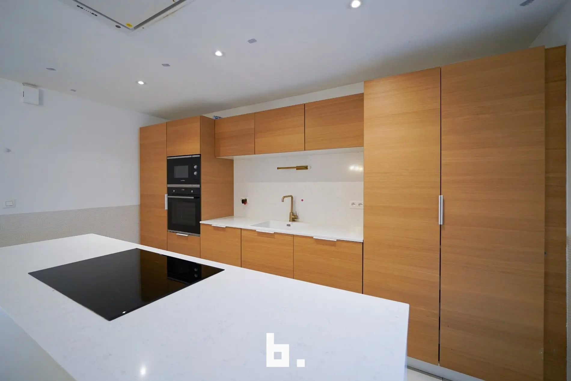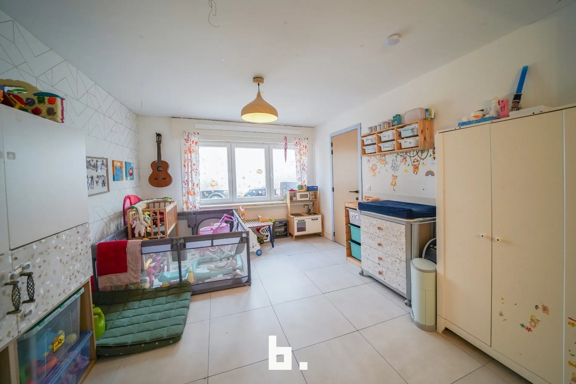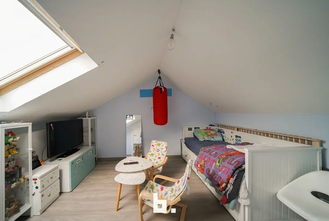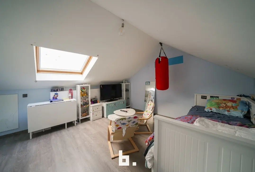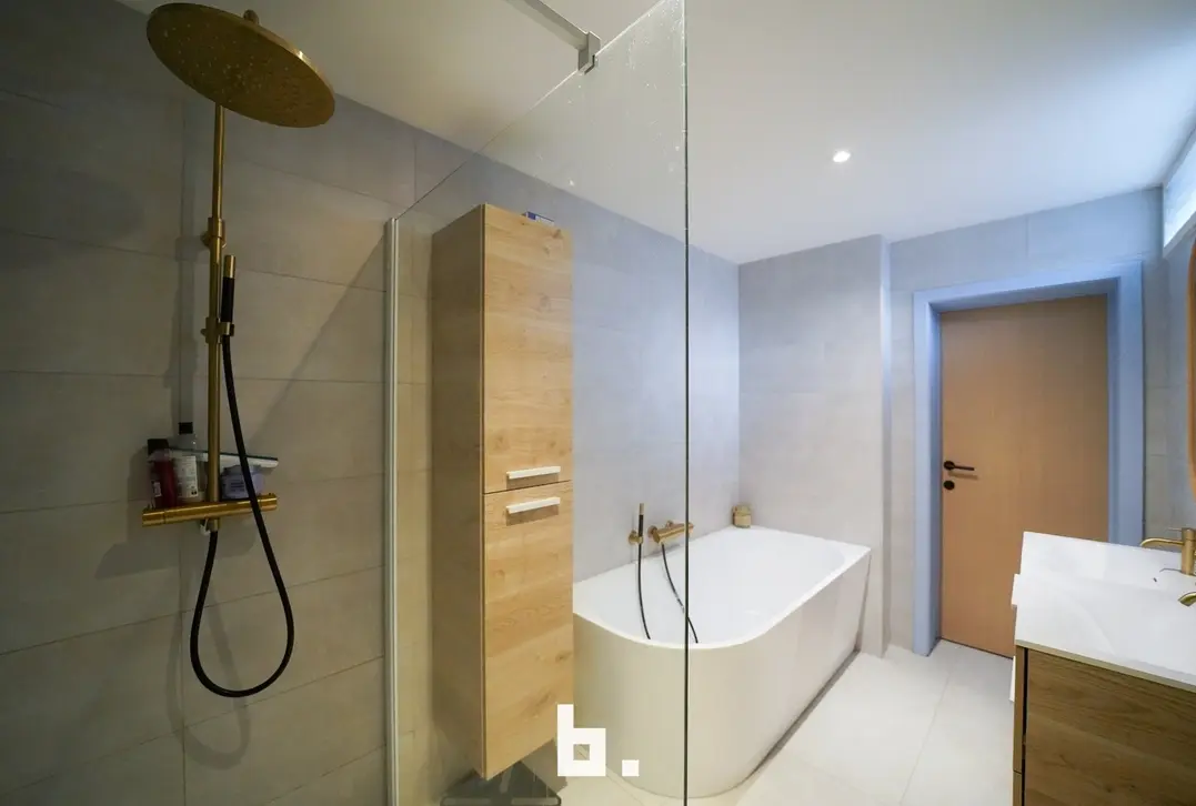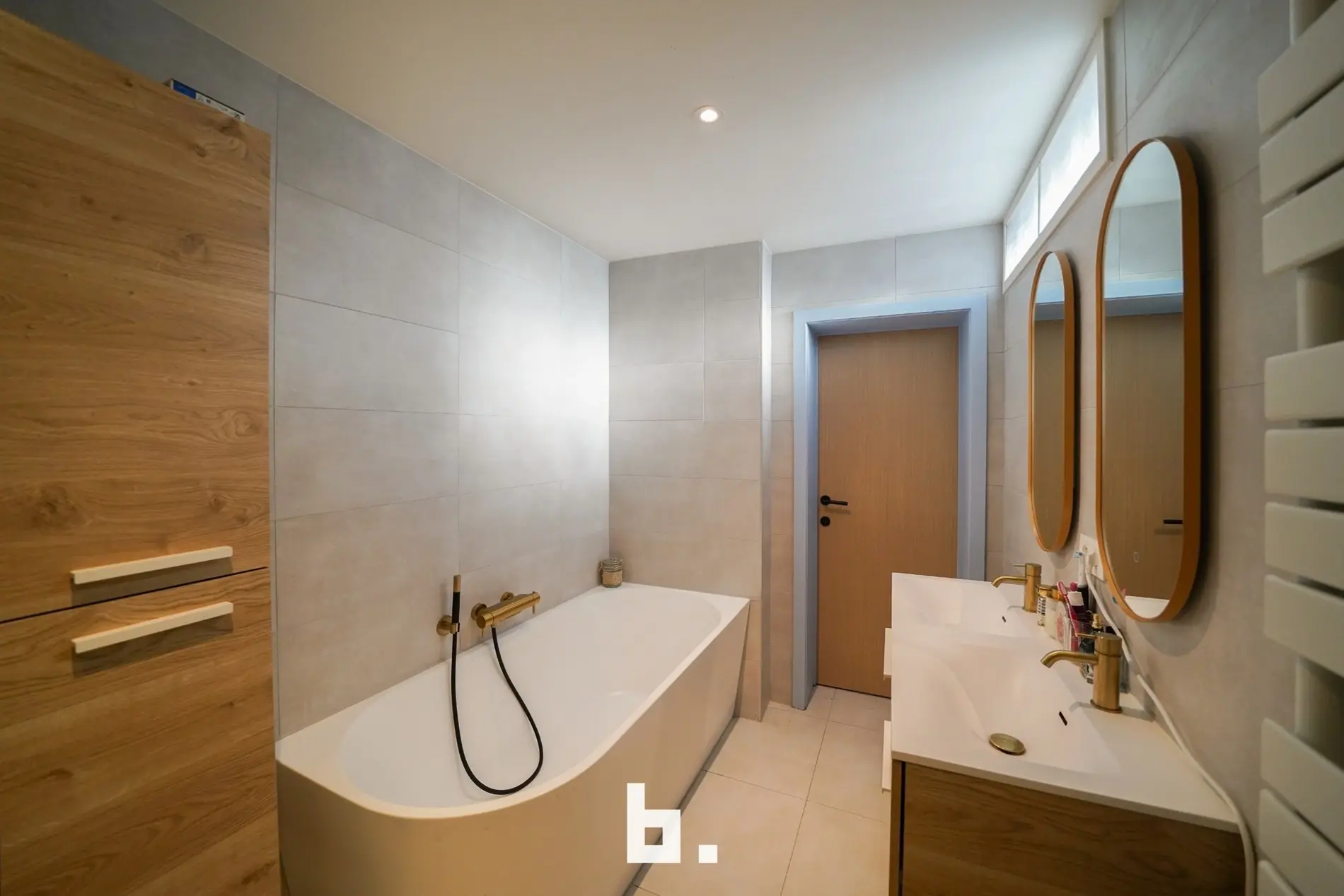 De woning is volledig instapklaar. De volledige benedenverdieping werd recent vernieuwd met een moderne open keuken, een luxueuze badkamer met inloopdouche, dubbele wastafel en toilet, en een nieuwe, doorlopende tegelvloer met vloerverwarming. Boven zijn er drie volwaardige slaapkamers en een kleine slaapkamer.