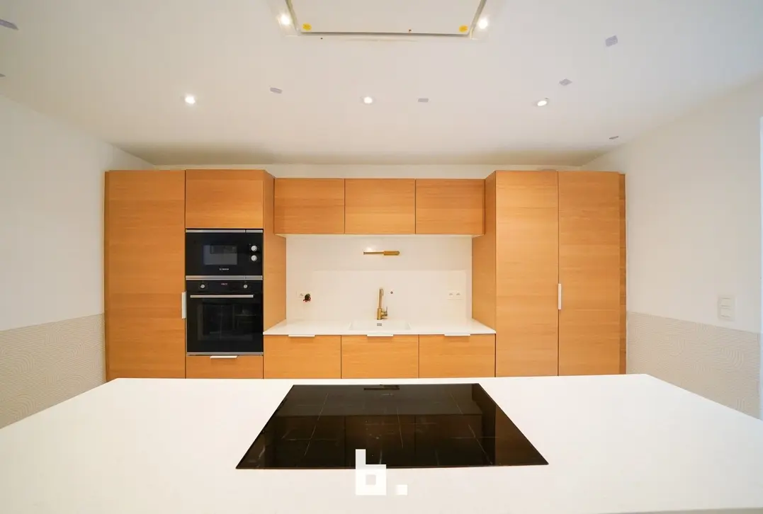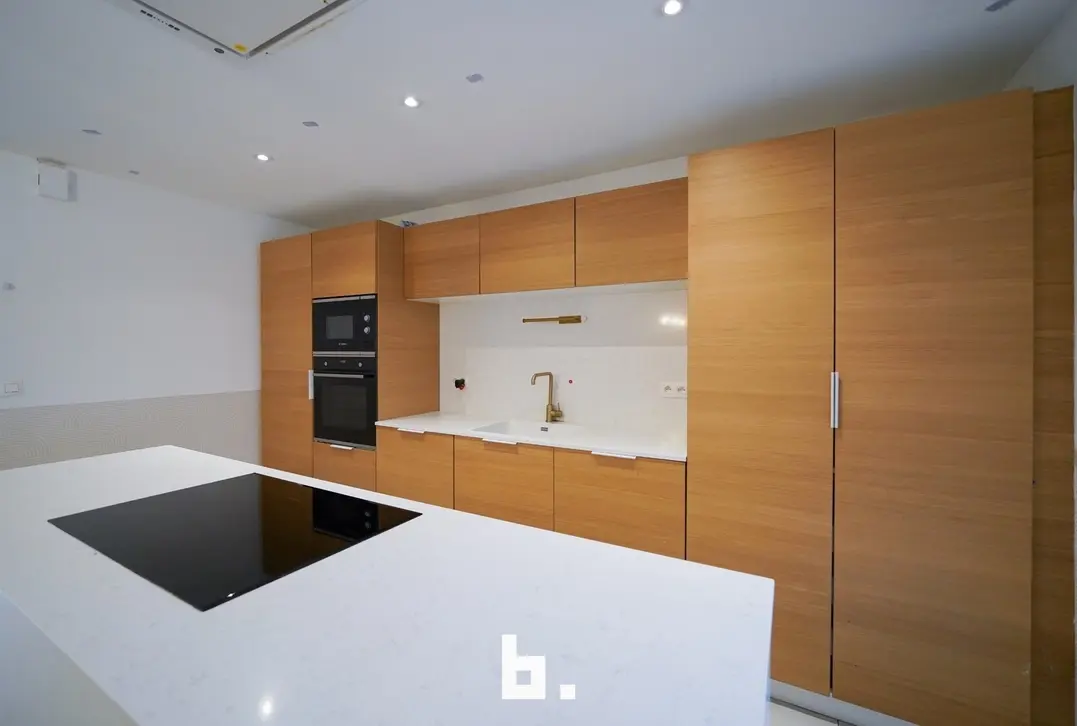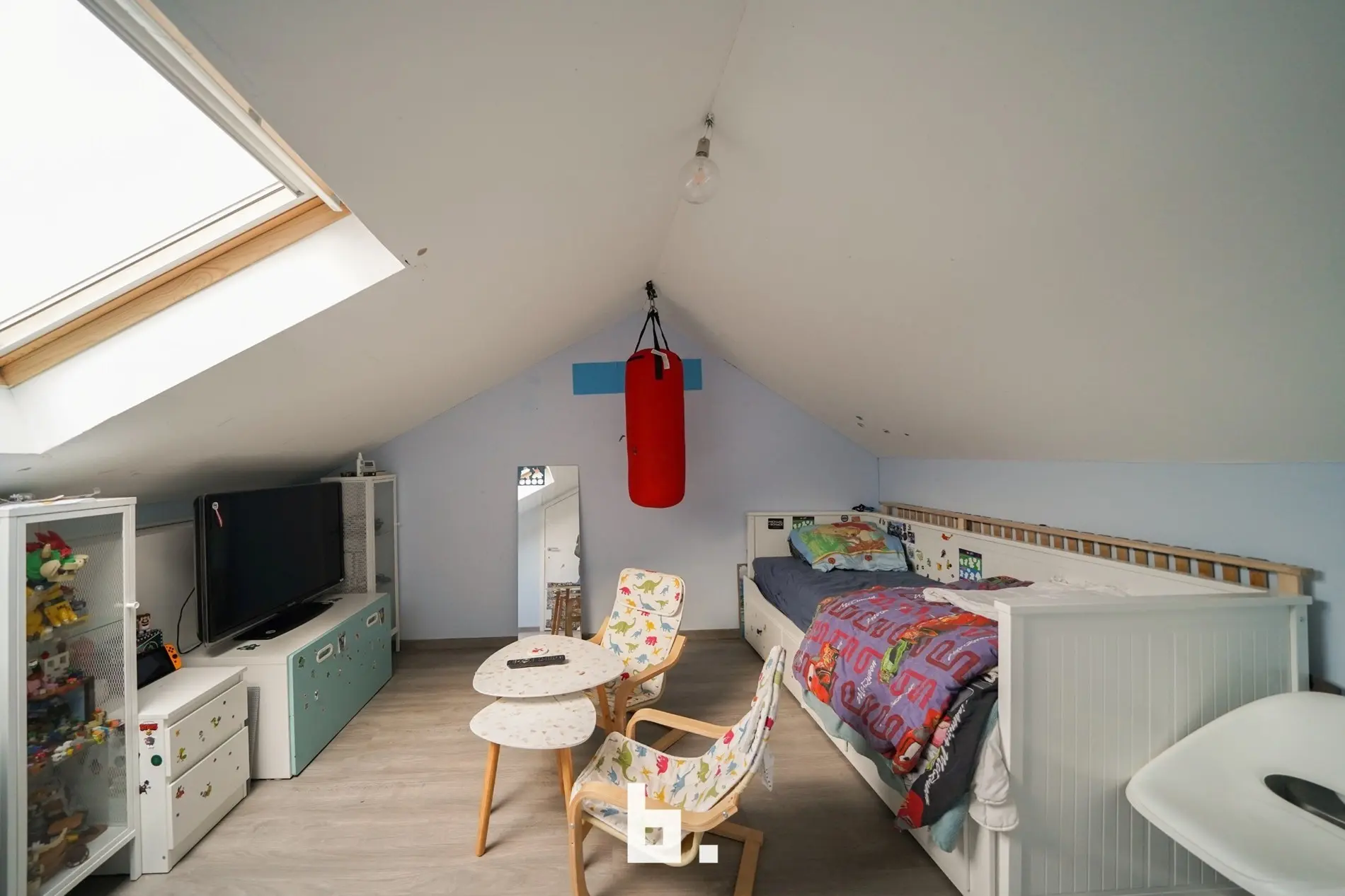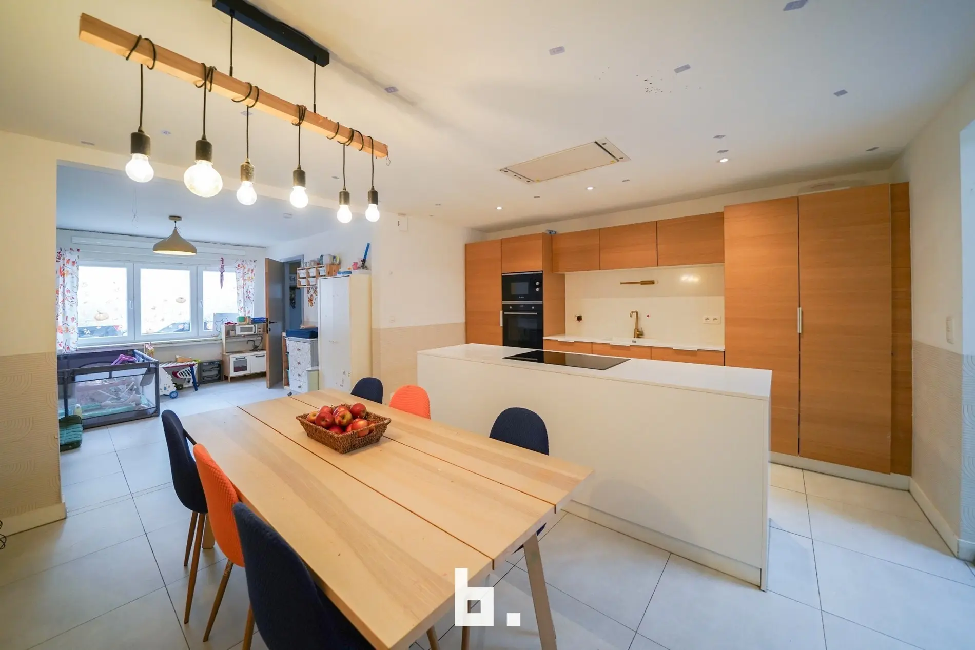 De woning is volledig instapklaar. De volledige benedenverdieping werd recent vernieuwd met een moderne open keuken, een luxueuze badkamer met inloopdouche, dubbele wastafel en toilet, en een nieuwe, doorlopende tegelvloer met vloerverwarming. Boven zijn er drie volwaardige slaapkamers en een kleine slaapkamer.