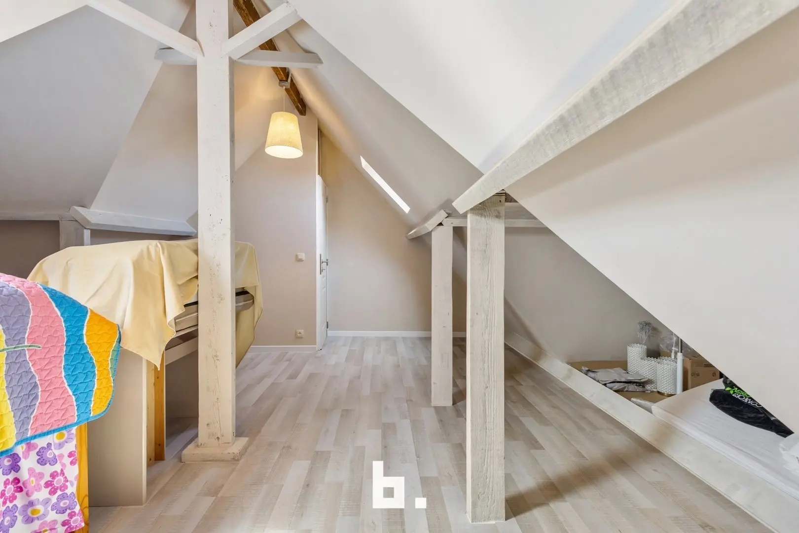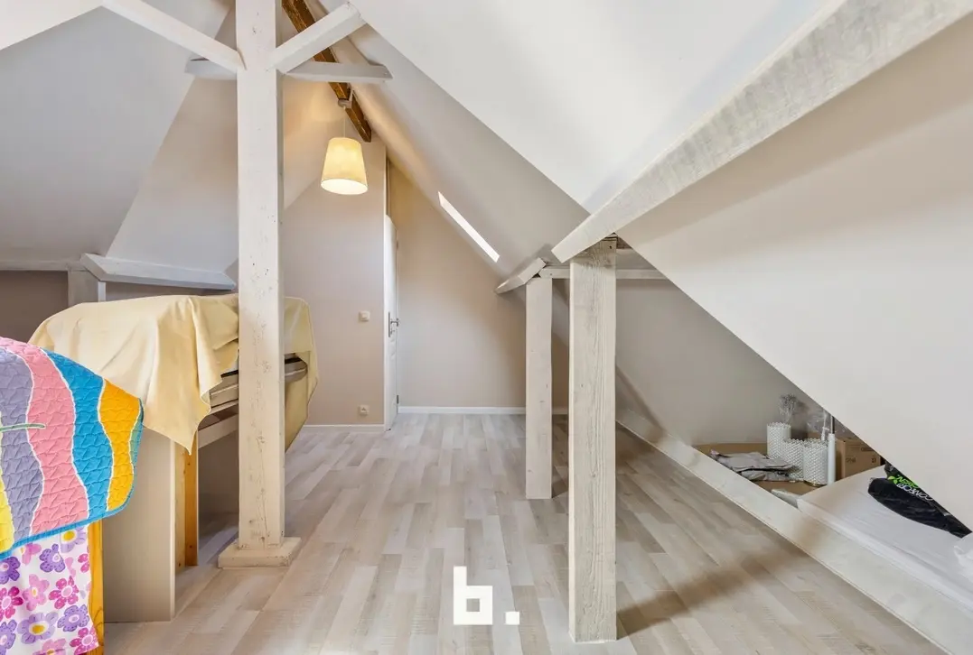 Op de eerste verdieping vinden we 3 slaapkamers. Op de tweede verdieping hebben we nog een zeer grote slaapkamer of hobby ruimte.