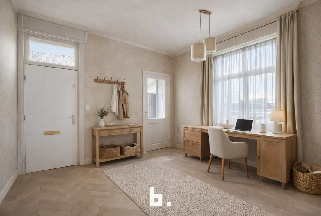Achteraan beschikt de woning over een praktische garage, een absolute troef in deze buurt.