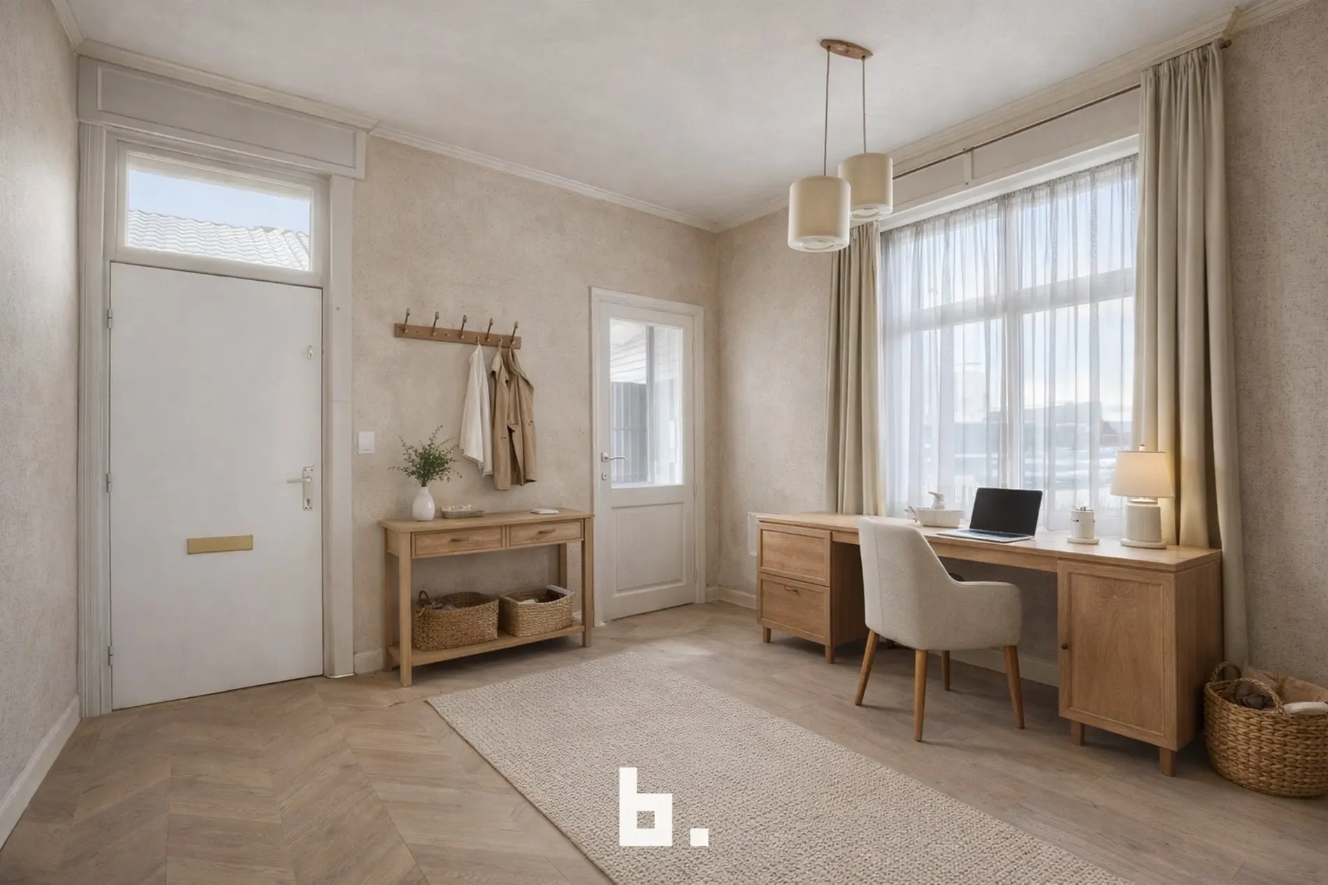 Achteraan beschikt de woning over een praktische garage, een absolute troef in deze buurt.