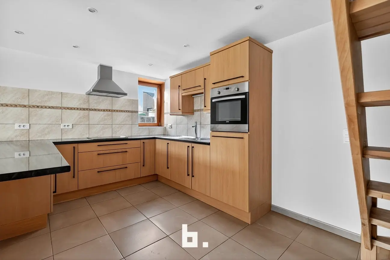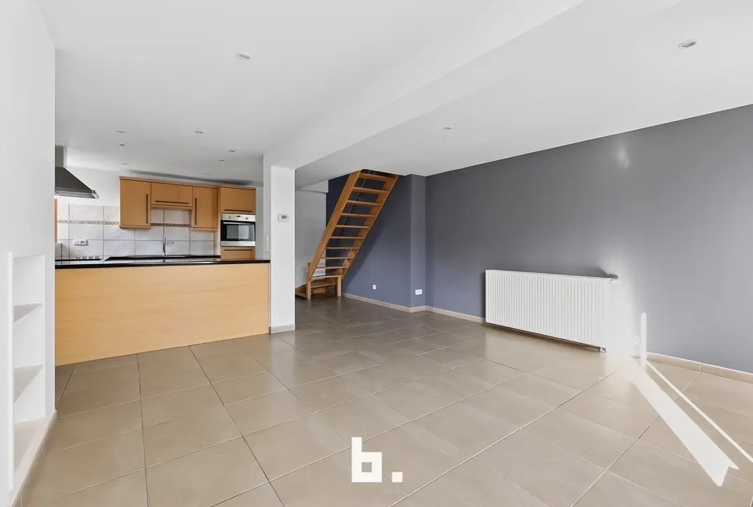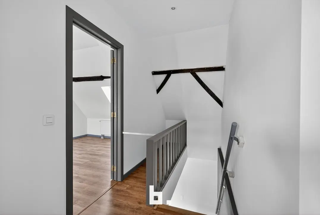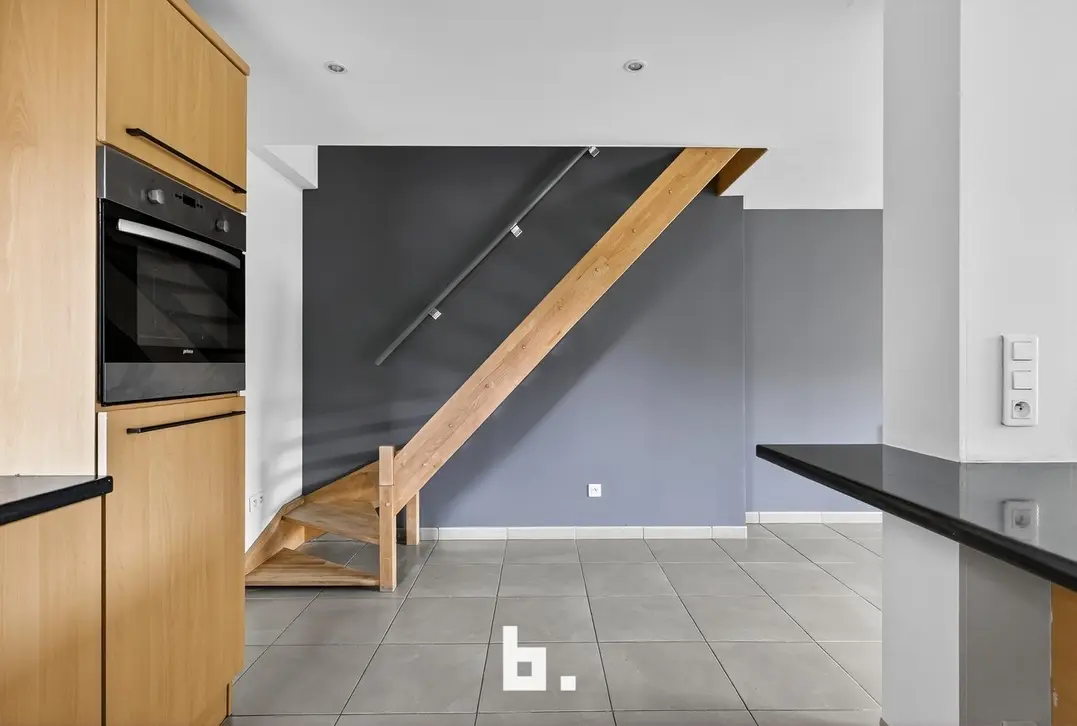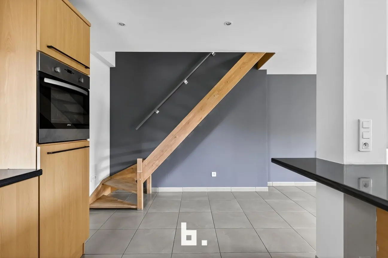 Bij het binnenkomen merk je direct de grote binnenruimte van deze charmante woning op. De open leefruimte met open keuken benadrukt de gezellige sfeer in de woning. Aan de voorkant van de woning is er een berging/wasruimte, een gastentoilet en badkamer. Via de parkeerplaats is er de toegang naar het zonnig tuintje. Op de eerste verdieping zijn er twee slaapkamers en een dressing (of 3de slaapkamer).