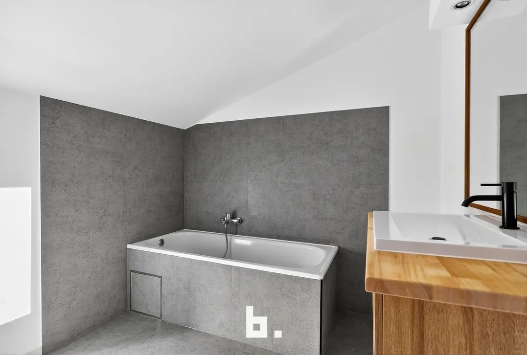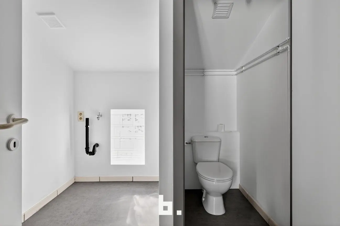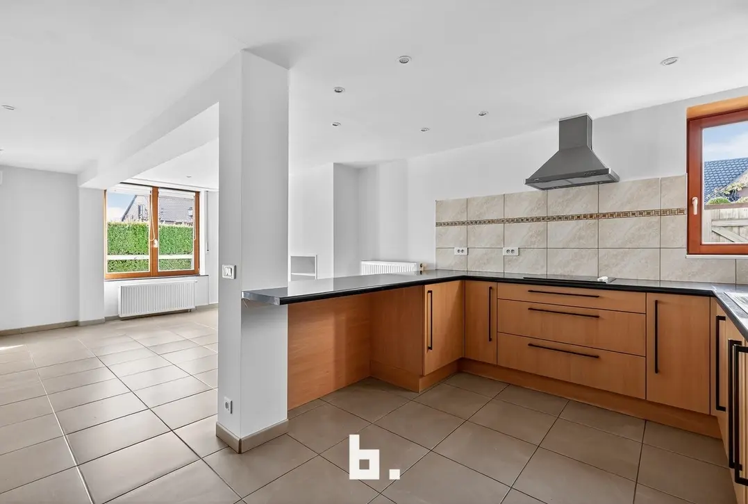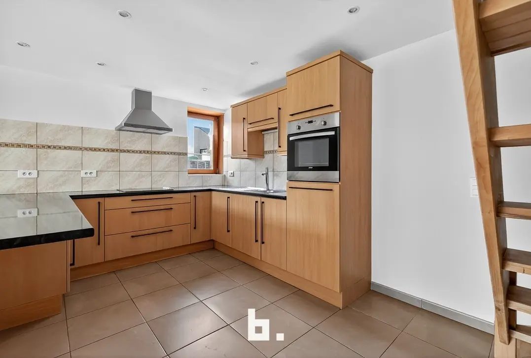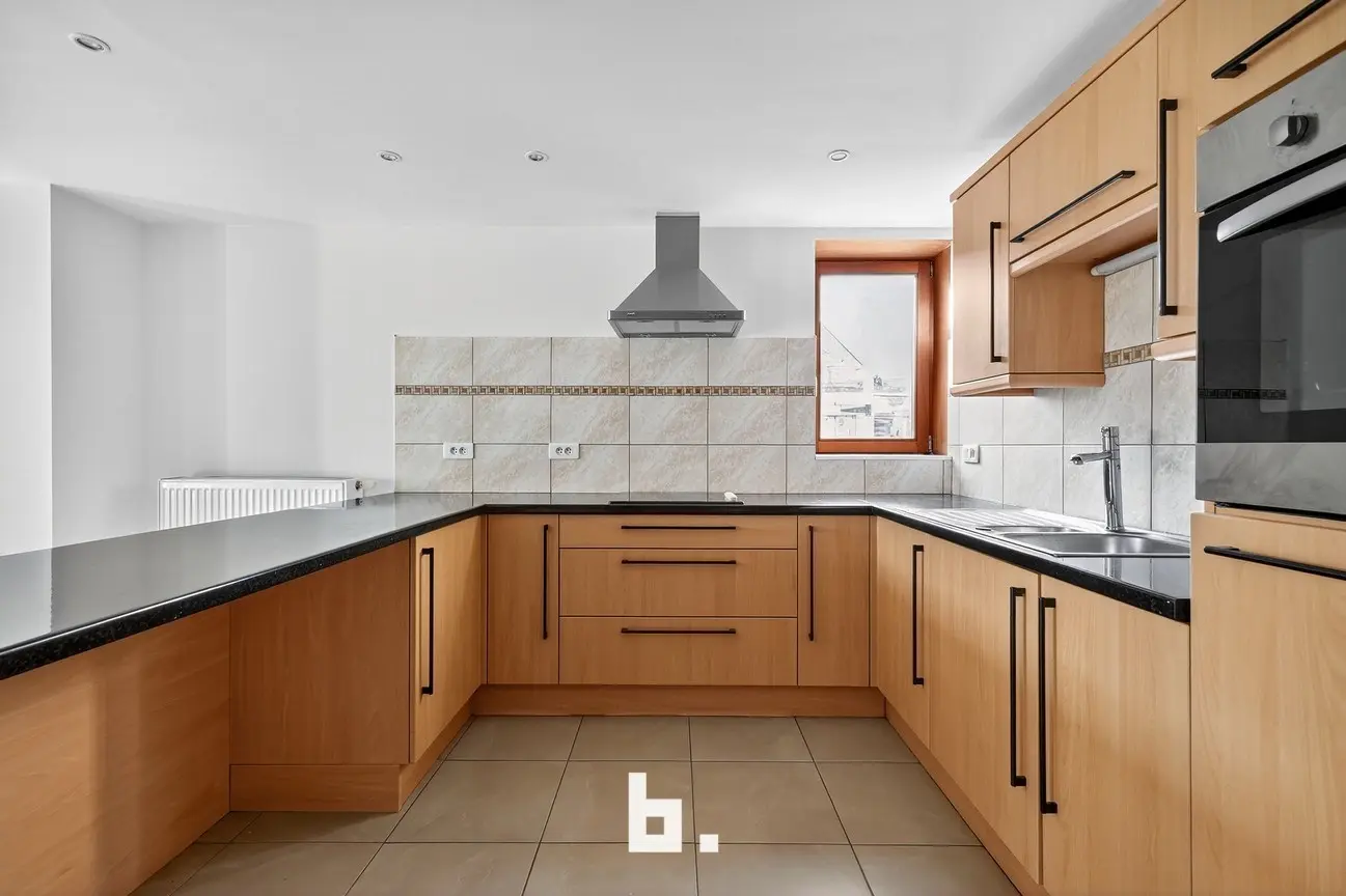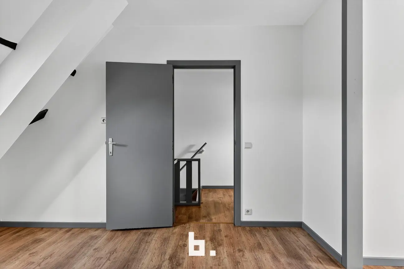 Bij het binnenkomen merk je direct de grote binnenruimte van deze charmante woning op. De open leefruimte met open keuken benadrukt de gezellige sfeer in de woning. Aan de voorkant van de woning is er een berging/wasruimte, een gastentoilet en badkamer. Via de parkeerplaats is er de toegang naar het zonnig tuintje. Op de eerste verdieping zijn er twee slaapkamers en een dressing (of 3de slaapkamer).