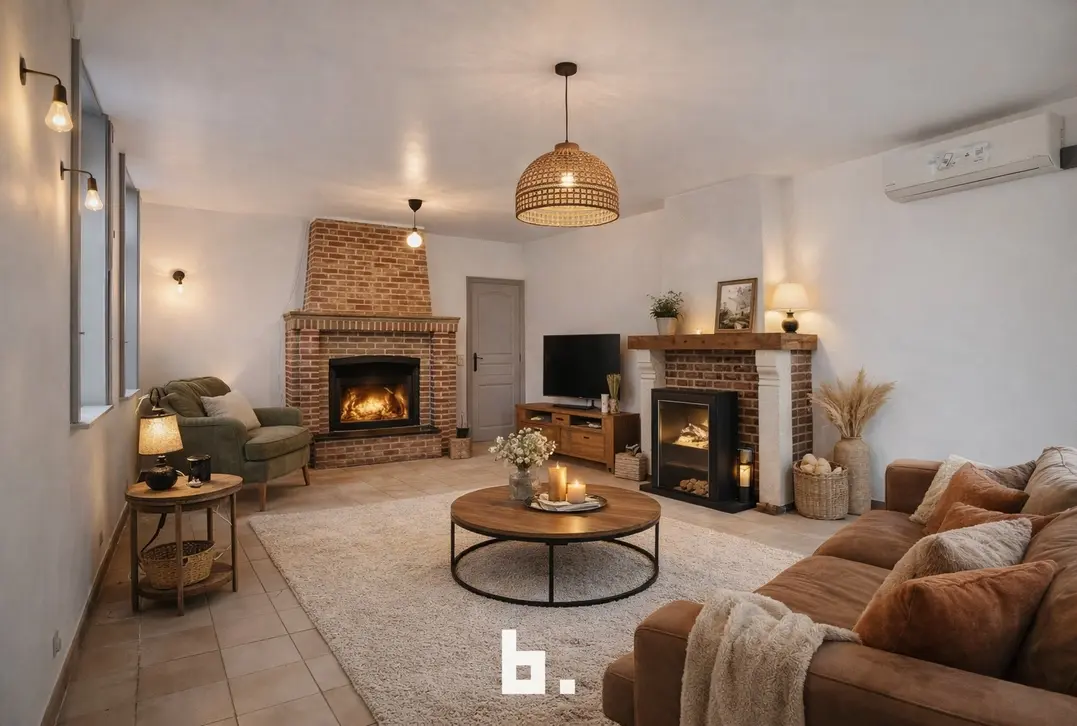 Gezellige leefruimte met open haard