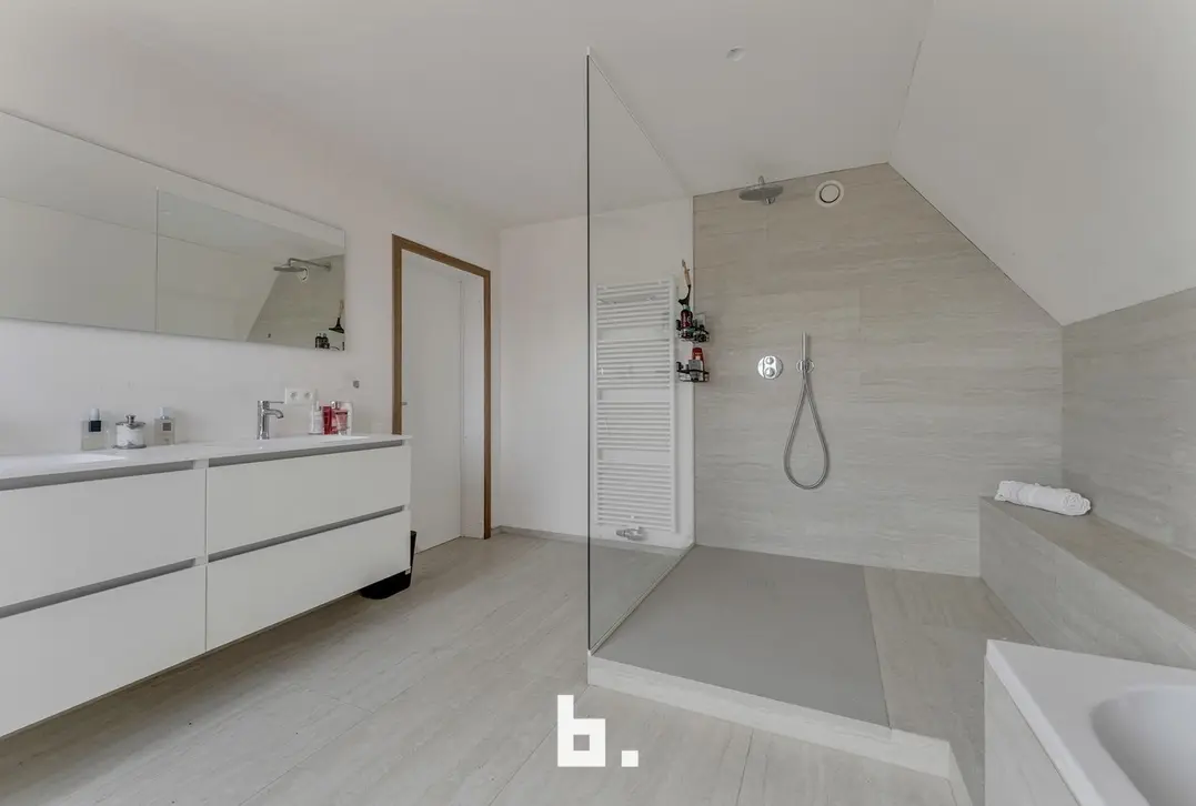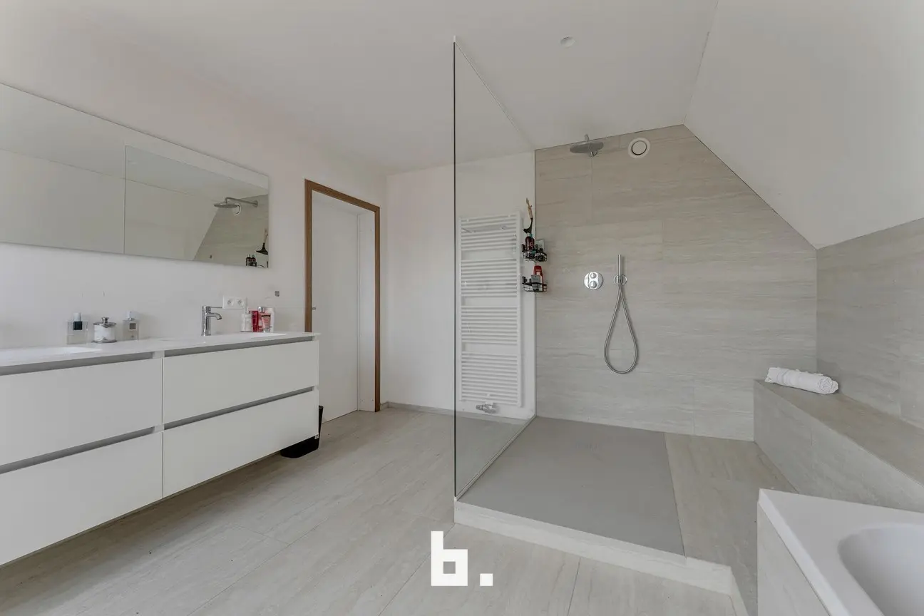Extra: Vloerverwarming, volledig uitgeruste keuken, maatkasten in gans de woning, 16 zonnepanelen, warmtepomp. 10.000 L regenwater, achteraan open uitzicht maar geen inkijk.. Deze woning is bijna zelfvoorziend in energie- en watergebruik.