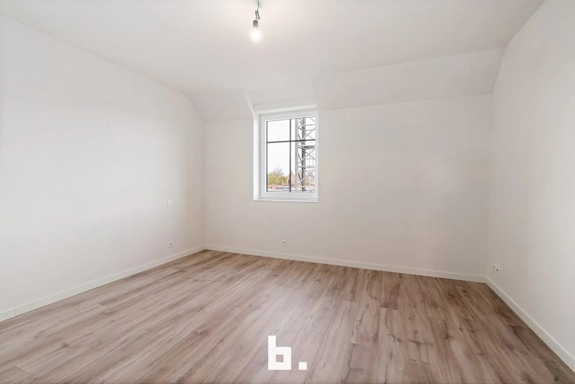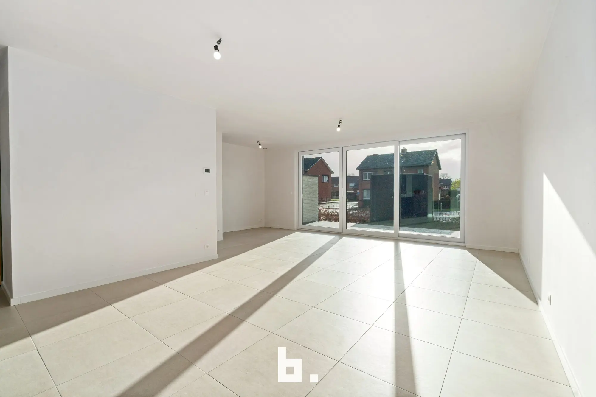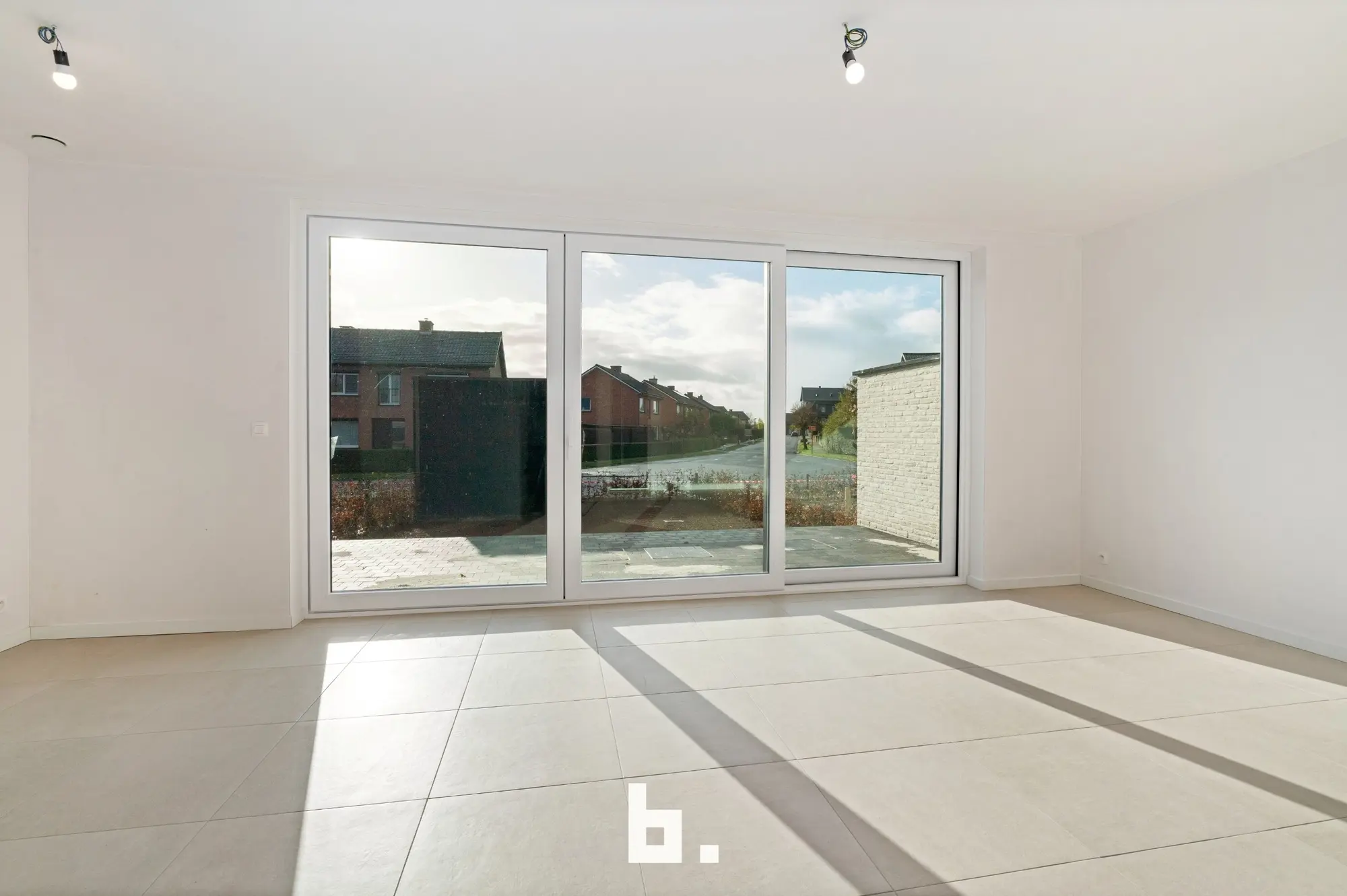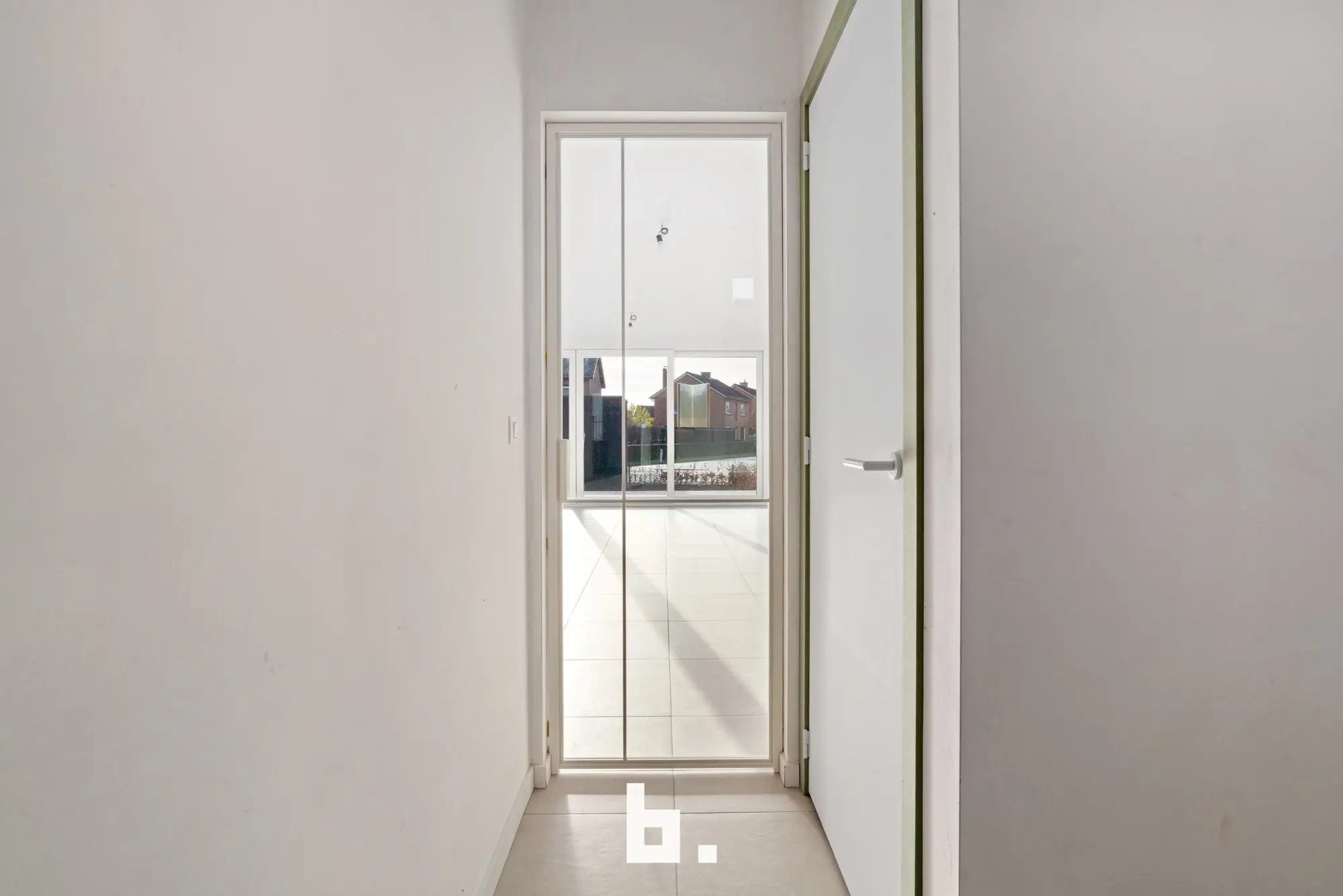 Bij binnenkomst wordt u verwelkomd in een ruime inkomhal, voorzien van een apart gastentoilet. De lichtrijke woonruimte is royaal opgezet en beschikt over een veelzijdige hoek die perfect kan dienen als bureau of polyvalente ruimte. De eethoek vormt het hart van de woning en sluit naadloos aan op de open keuken, die is uitgerust met alle toestellen en ontworpen werd met oog voor functionaliteit en esthetiek. Aansluitend vindt u een aparte berging met de nodige aansluitingen voor wasmachine en droogkast.