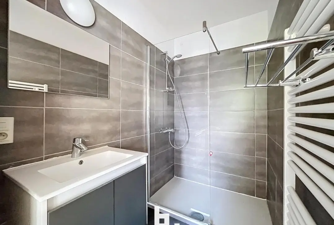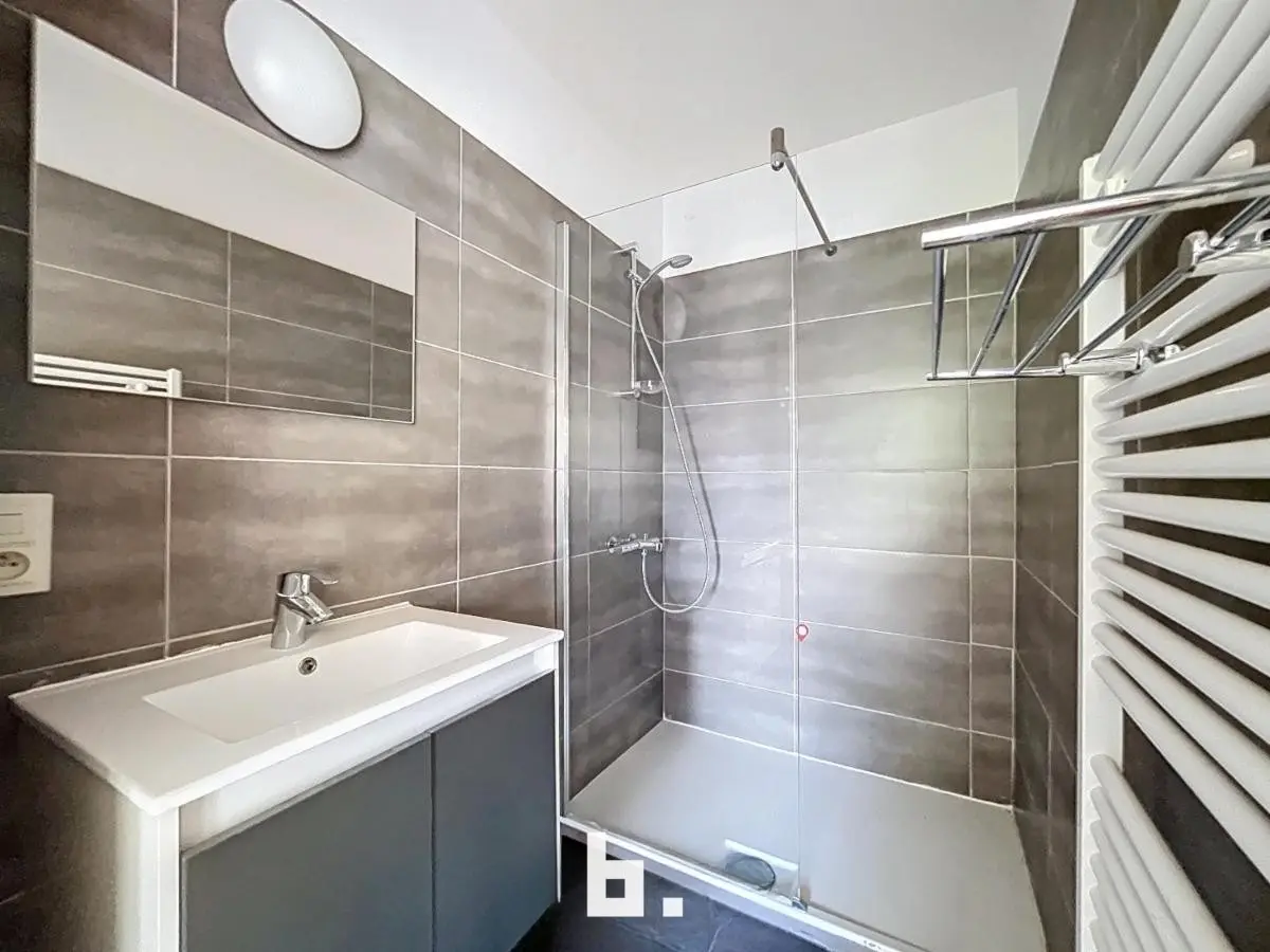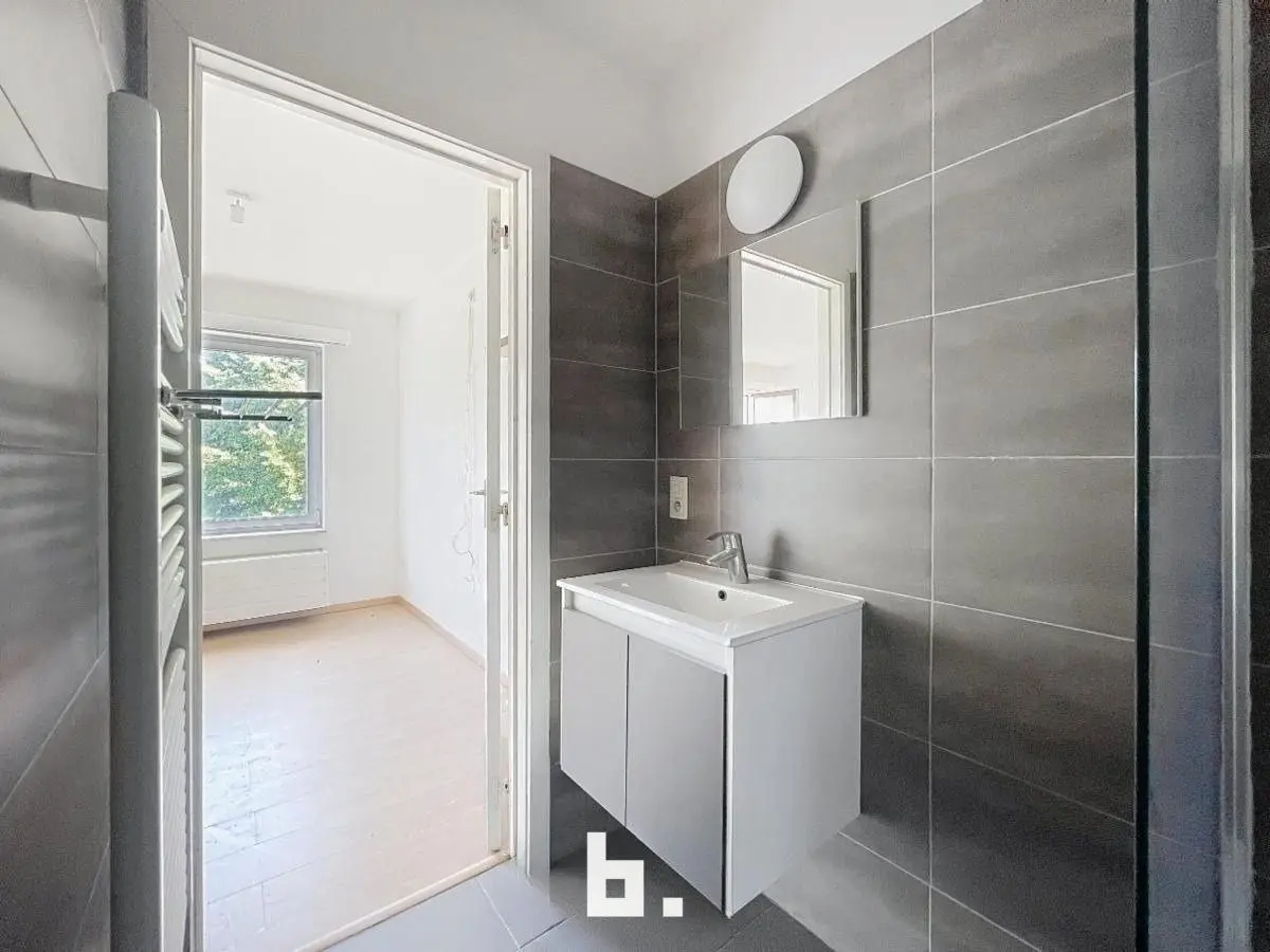 De badkamer werd volledig gerenoveerd en is stijlvol ingericht.