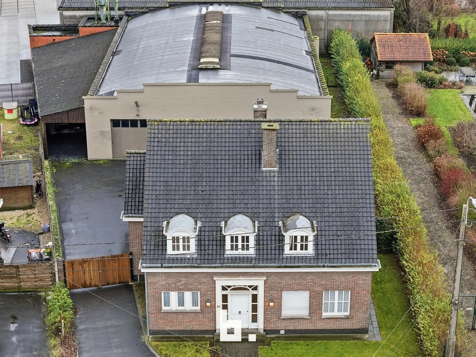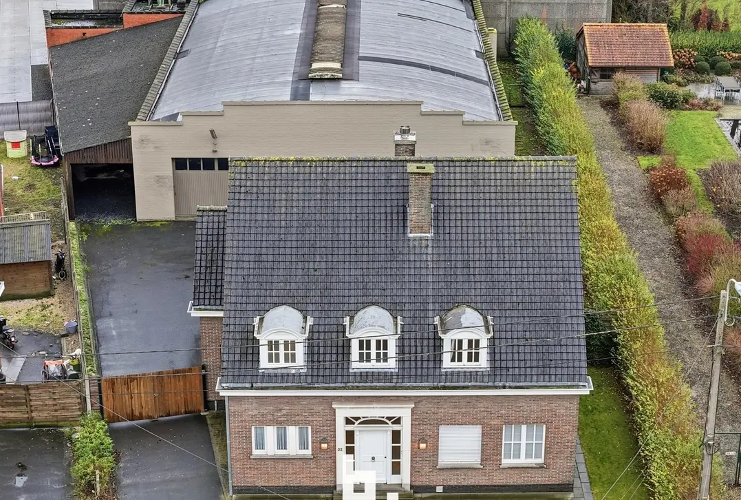 Een absolute meerwaarde is de ruime loods van maar liefst 450 m², uitgerust met drijfkracht en bureelruimte. De loods beschikt over een toegangspoort van ca. 3 m hoog, wat ze uitermate geschikt maakt voor diverse professionele activiteiten. Aansluitend is er een volledig overdekte carport.