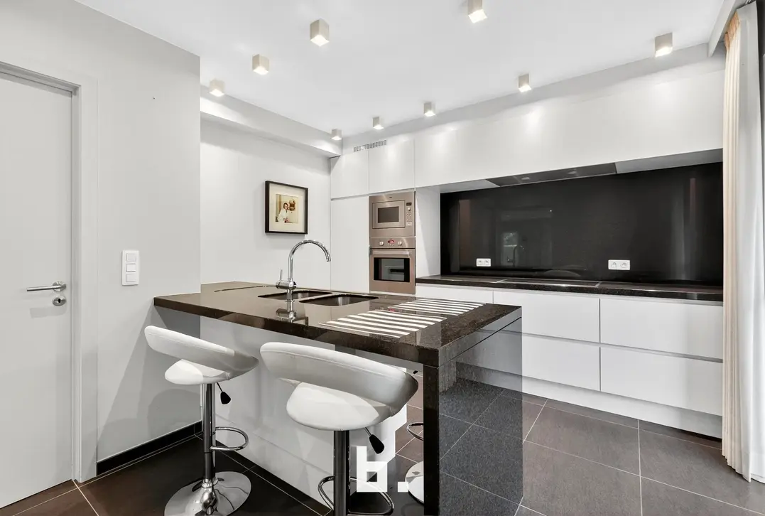 Het appartement beschikt over drie slaapkamers, waarvan één met ensuite badkamer. De tweede slaapkamer doet momenteel dienst als dressing, en er is bovendien nog een volwaardige tweede badkamer aanwezig. Een praktische wasplaats en technische berging bieden extra comfort en functionaliteit.