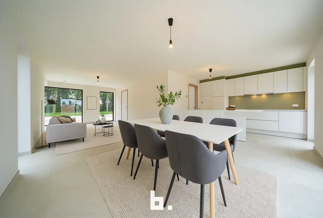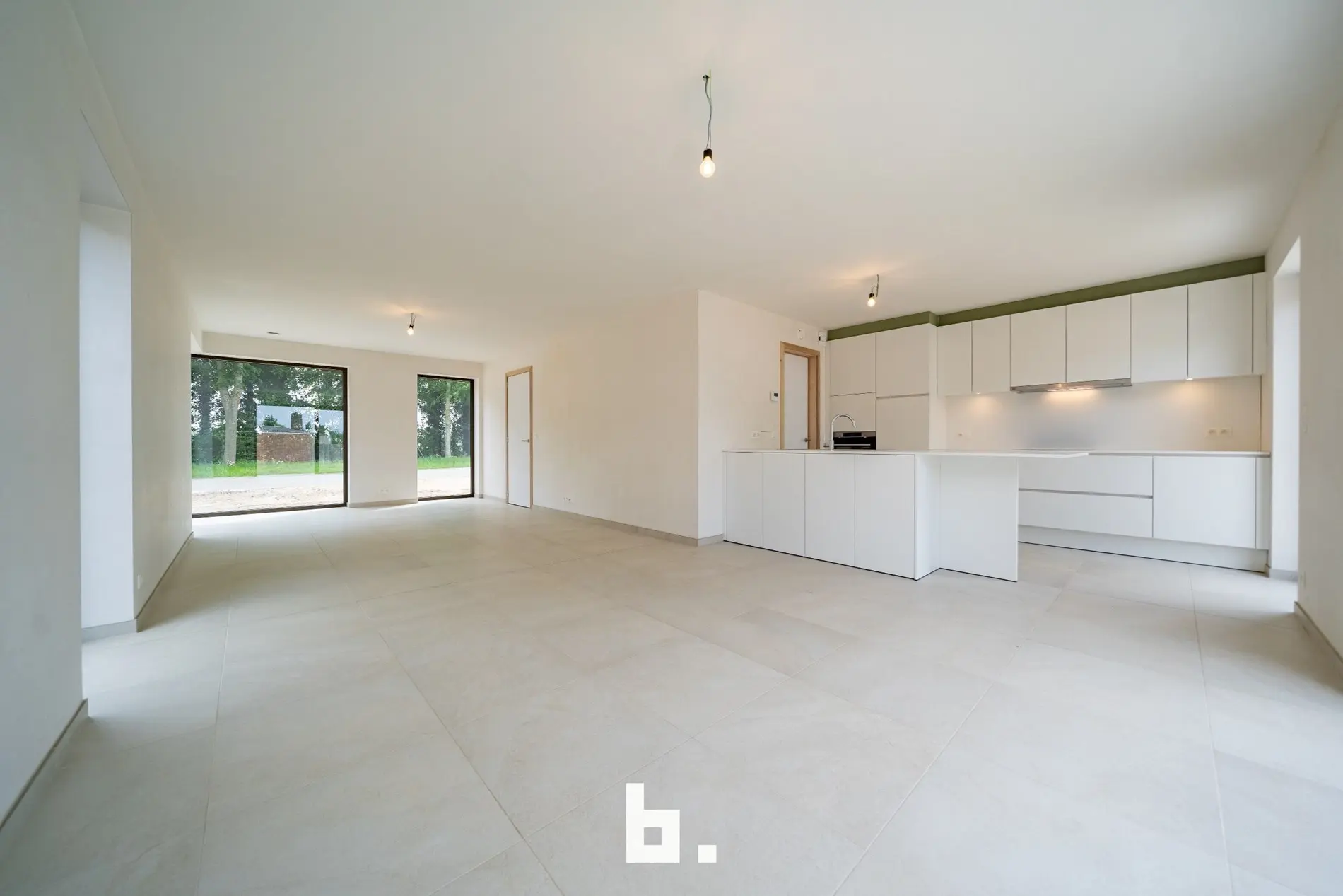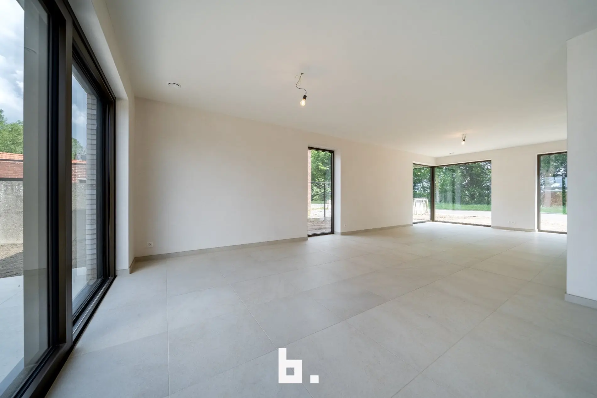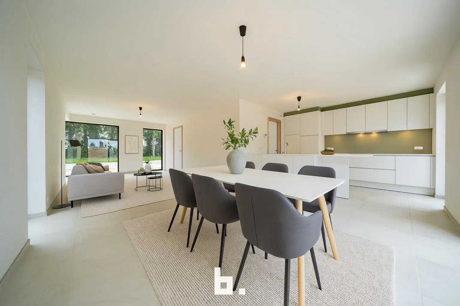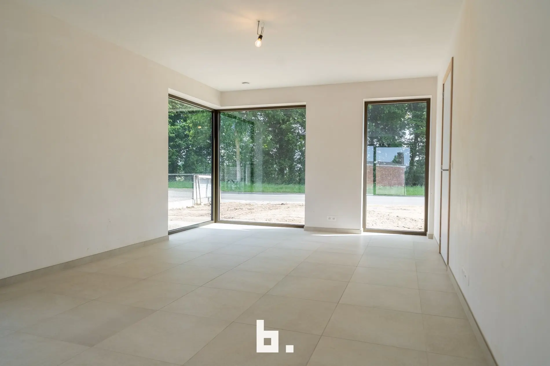 Moderne nieuwbouwwoning op een ruim perceel van 630 m². Deze woning biedt een ideale mix van modern comfort en ruimte alsook veel lichtinval en volwaardige ruimtes. De woning beschikt over vier slaapkamers en een stijlvolle badkamer. Er is een open lichtrijke woonkamer, de moderne open keuken, voorzien van strakke witte kasten en een centraal eiland, is een droom voor elke kookliefhebber. Naast de keuken is een praktische berging. Boven zijn er 3 ruime slaapkamers en een 4e kinderkamer/hobbyruimte. De badkamer is ingericht met zowel ligbad als douche alsook een lavabomeubel.