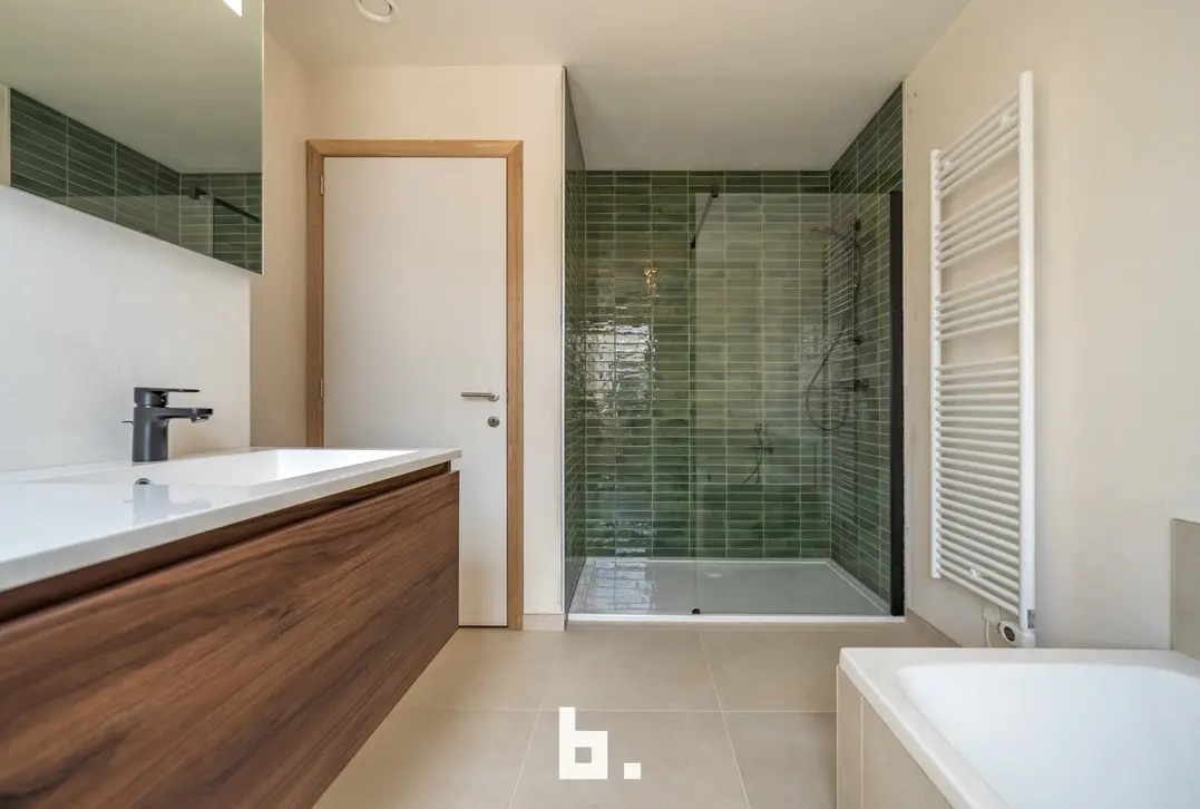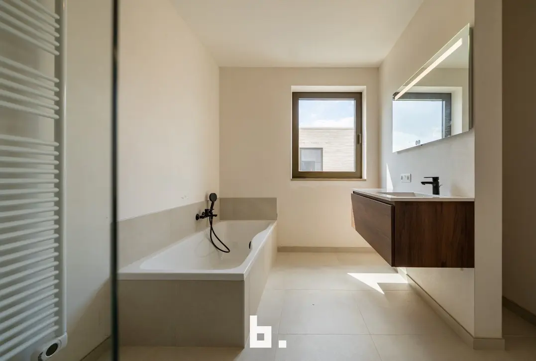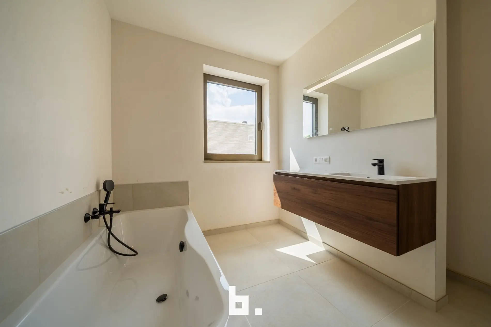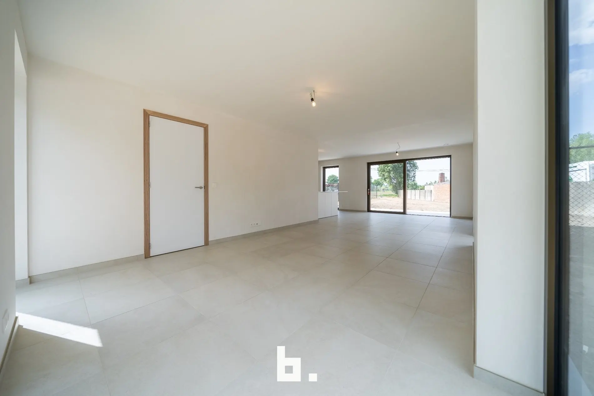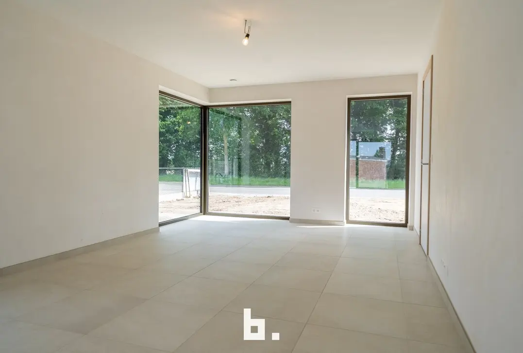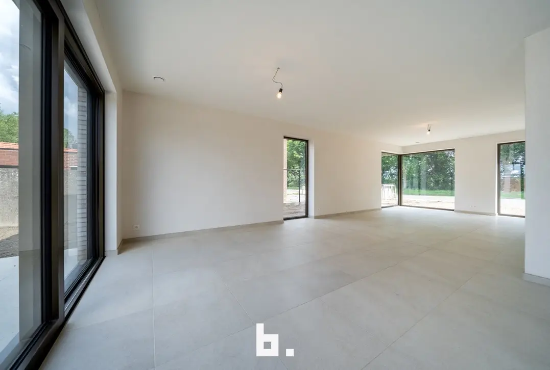 Moderne nieuwbouwwoning op een ruim perceel van 630 m². Deze woning biedt een ideale mix van modern comfort en ruimte alsook veel lichtinval en volwaardige ruimtes. De woning beschikt over vier slaapkamers en een stijlvolle badkamer. Er is een open lichtrijke woonkamer, de moderne open keuken, voorzien van strakke witte kasten en een centraal eiland, is een droom voor elke kookliefhebber. Naast de keuken is een praktische berging. Boven zijn er 3 ruime slaapkamers en een 4e kinderkamer/hobbyruimte. De badkamer is ingericht met zowel ligbad als douche alsook een lavabomeubel.