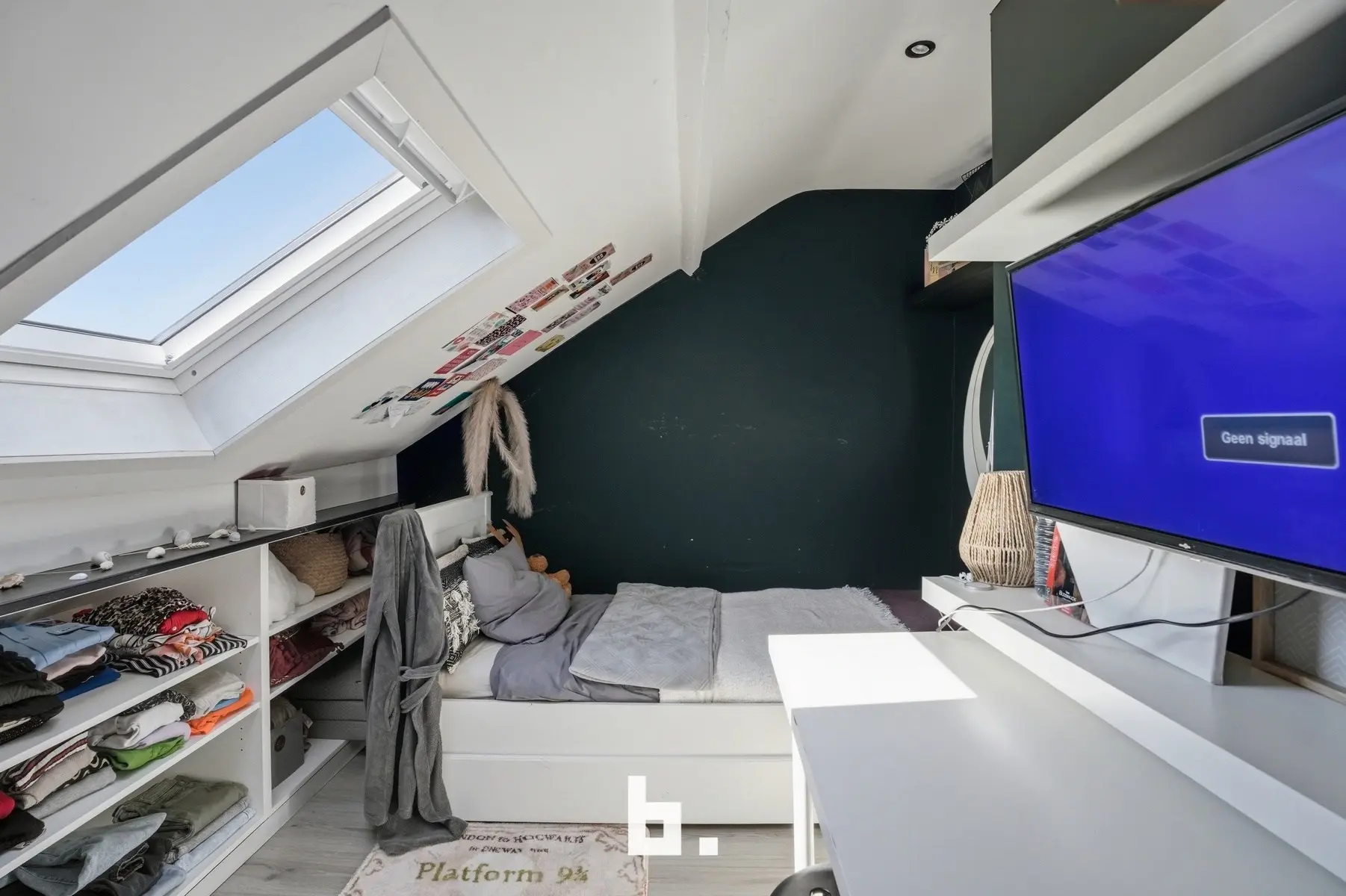 Indeling: De woning komt u binnen via de inkomhal rechtstreeks in de woonkamer, aansluitend hebben we de keuken met ontbijthoek. Er is ook toegang tot de kelder. De ruime leefruimte komt uit op het terras. Verder nog de badkamer met toilet, wastafel, inloopdouche en wasplaats. Op het eerste verdiep hebben we twee aangename slaapkamers. Op de tweede verdieping hebben we nog eens twee kinderkamers. Buiten hebben we een aangename diepe stadstuin met zonneterras en een poortje achteraan.