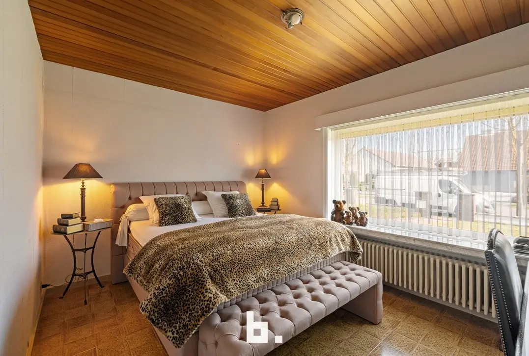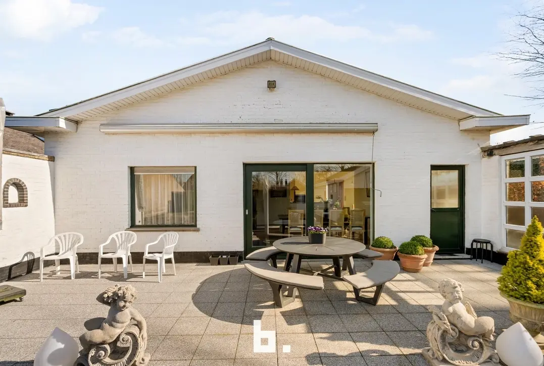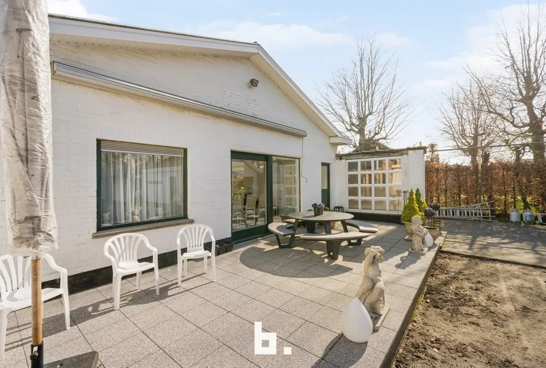Deze open bebouwing met afzonderlijke dubbele garage en bijgebouw bevindt zich op een ruim perceel van 942 m². Deze eigendom is gelegen in het landelijke Varsenare en beschikt over een prachtige groene tuin op het zuidwesten. Zeer gunstige, uiterst centrale locatie nabij tal van voorzieningen en invalswegen. Deze gelijkvloerse woning vraagt om een renovatie en is als volgt ingedeeld: inkomhal met afzonderlijk toilet, ruime lichtrijke woonkamer, afzonderlijke leefkeuken met bureauruimte uitgevend op de tuin, 2 ruime slaapkamers, badkamer (ligbad, douche, wastafelmeubel). BUITENOMGEVING: ruime voortuin en oprit, zuidwest georiënteerde achtertuin, terras voorzien van zonneluifel, afzonderlijke dubbele garage, volledig gerenoveerd bijgebouw ingericht als feestzaal met afzonderlijke keuken en badkamer (incl. apart toilet en keukentje).
