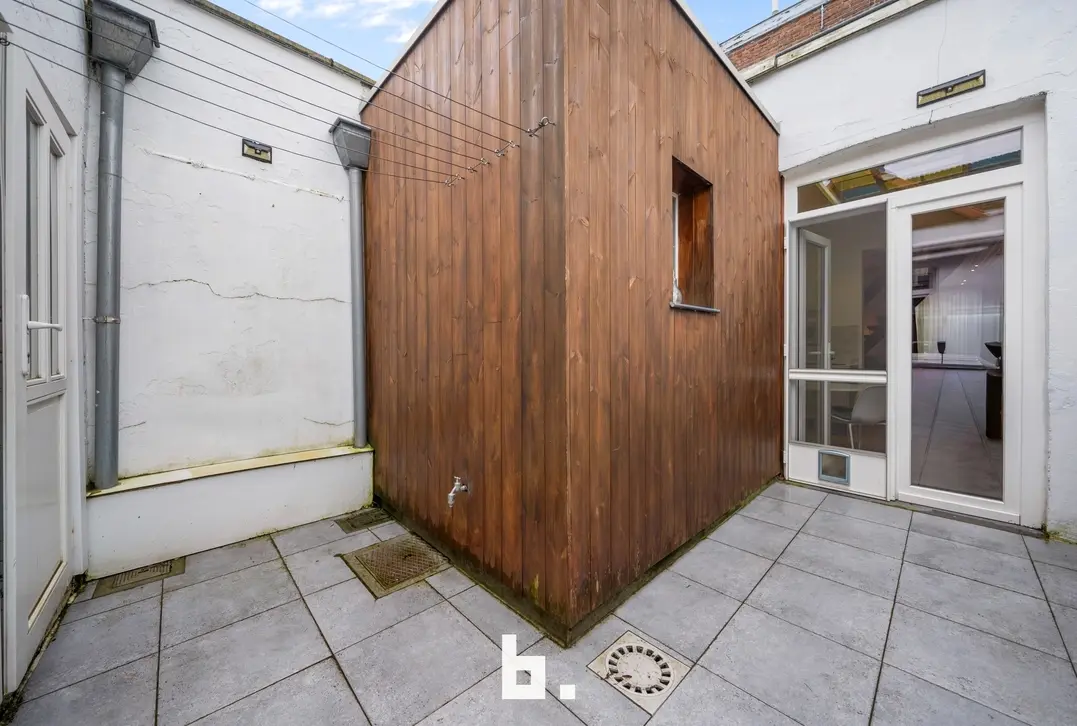 Bij het binnenkomen treft u een inkomhal die uitmondt in een gezellige leefruimte met een mooie, open verbinding naar de keuken. Aansluitend bevindt zich de badkamer, uitgerust met een bad en toilet. Vanuit de keuken heeft u toegang tot het aangename stadstuintje, ideaal om even te ontspannen. Verder beschikt de woning over een ruime berging met een rechtstreekse toegangsdeur naar de parking.