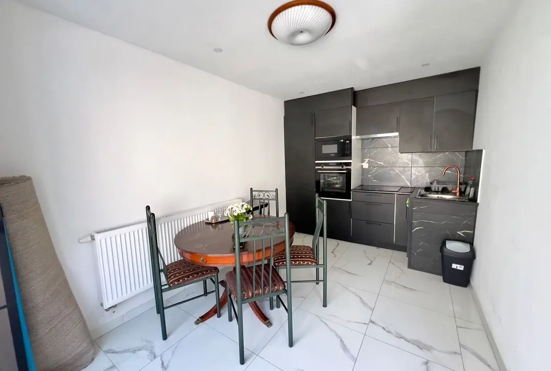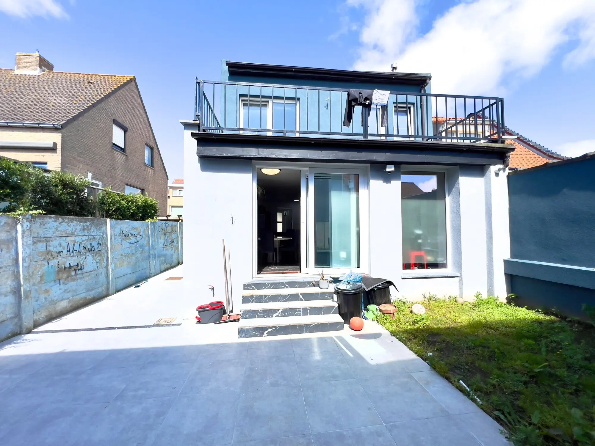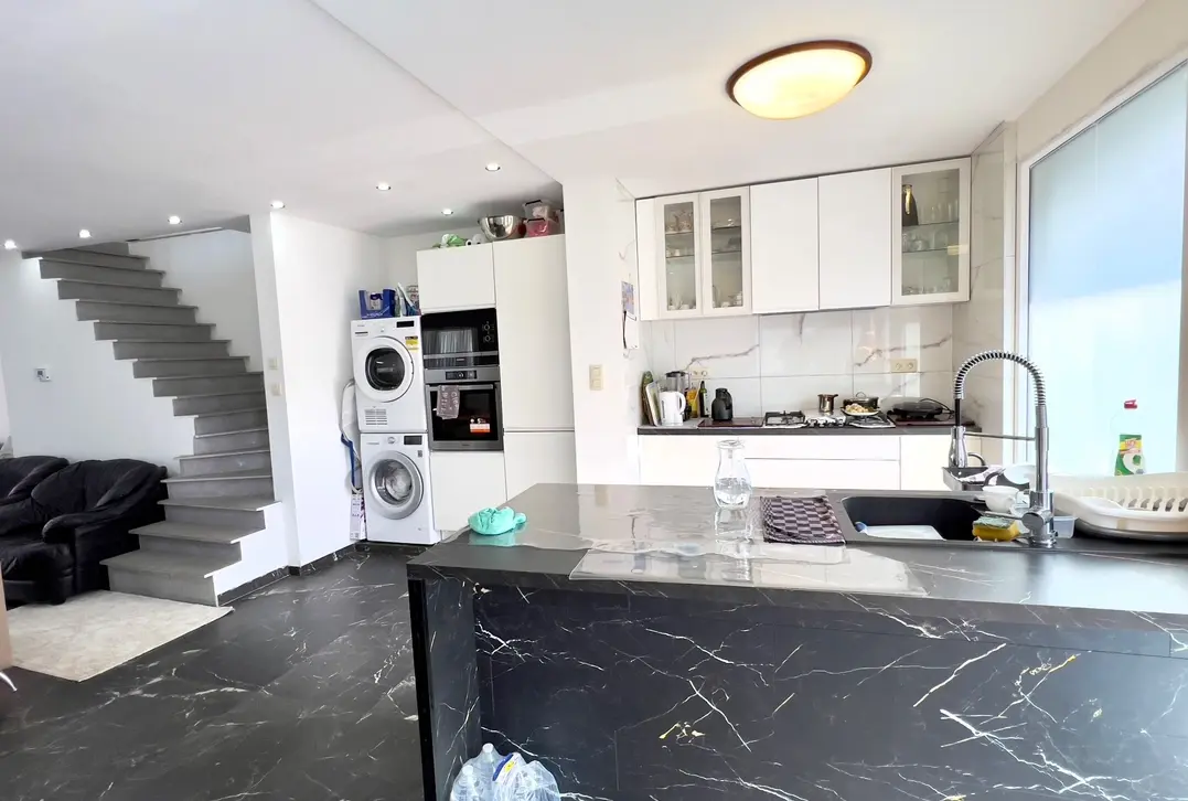 Deze ruime woning is net volledig gerenoveerd. Op het gelijkvloerse is er een ruime leefruimte met open keuken en een ruime zithoek en toilet. Op het eerste verdiep zijn er 3 slaapkamers, de badkamer en het toilet en een ruim zon gericht terras. De zolder is in gebruik als berging. Het achterhuis heeft een garage, leefruimte met keuken en in de hal is er de badkamer, op het verdiep zijn er 2 slaapkamers. Zien is kopen.