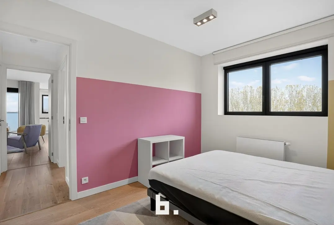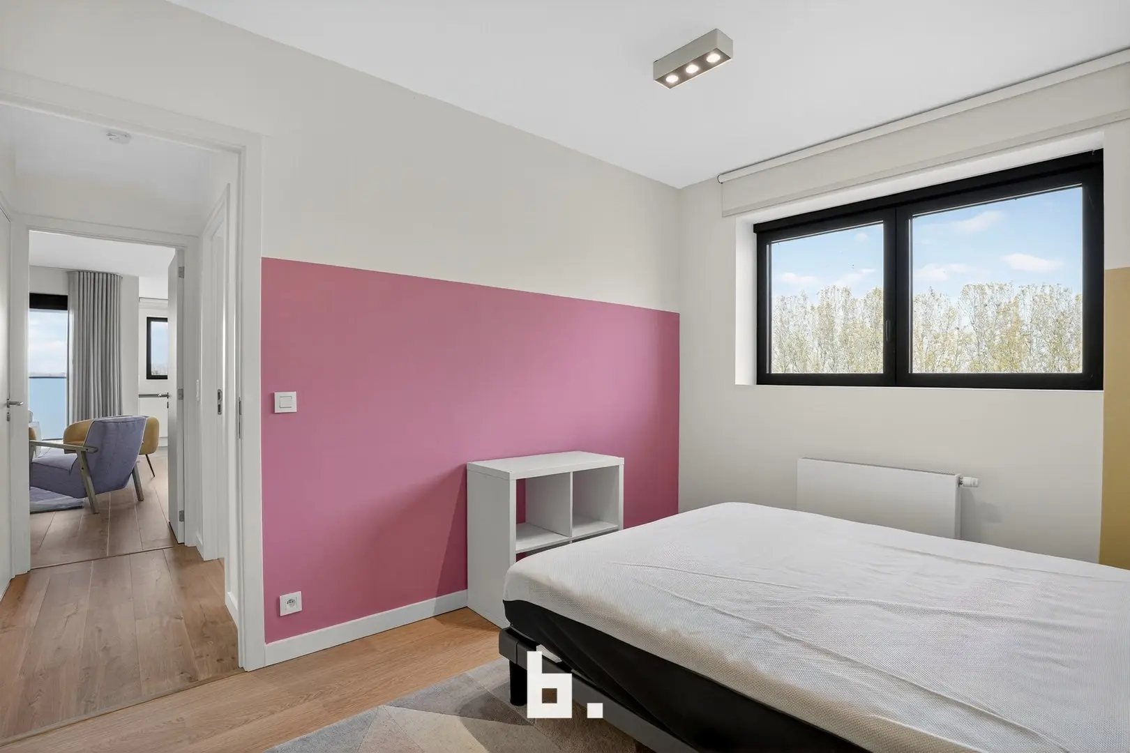 De badkamer werd stijlvol ingericht met een bad en een lavabomeubel. Verder beschikt het appartement over twee volwaardige slaapkamers, perfect als hoofd- en logeerkamer of bureauruimte. Er is ook nog een berging en afzonderlijk toilet.