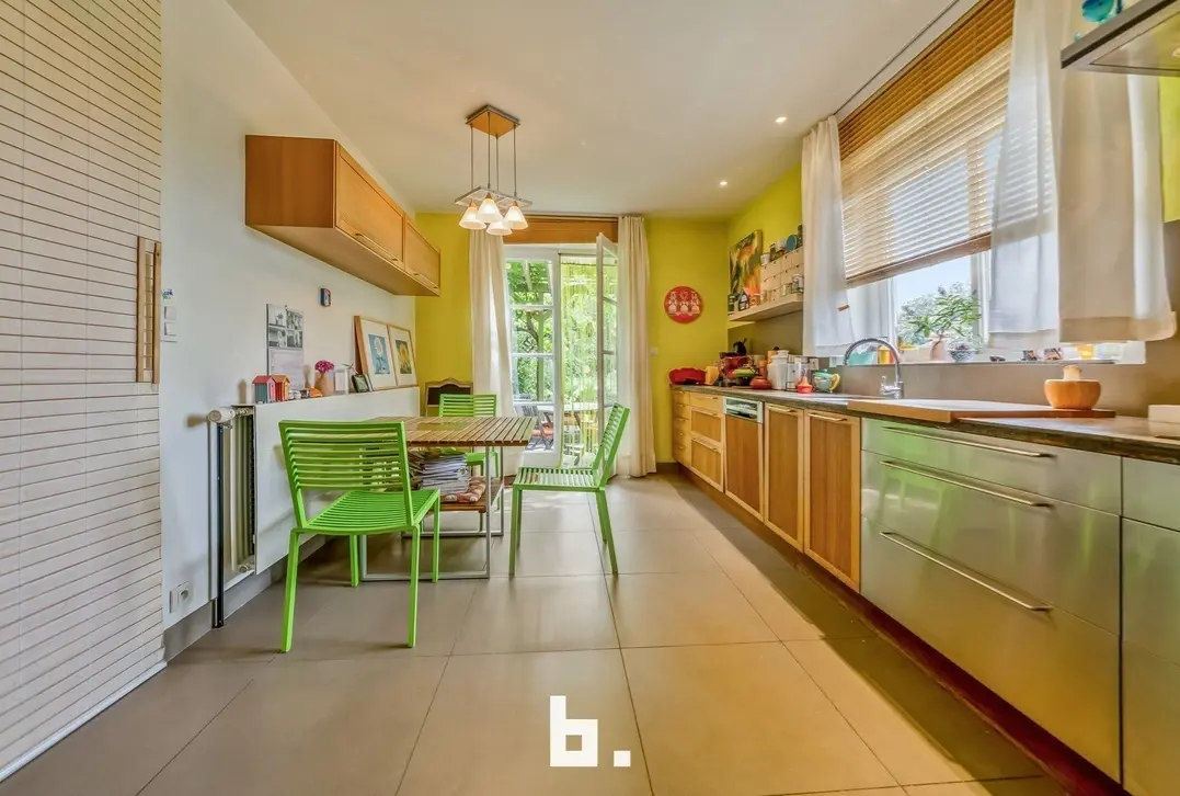 Een lange oprit leidt u naar deze bijzondere woning. Via de uitnodigende entree betreedt u een ruime, sfeervolle woonkamer met open traphal. Grote raampartijen laten het daglicht overvloedig binnen en bieden een prachtig uitzicht op de zonnige, verzorgde tuin. Aansluitend bevindt zich een lichtrijke eetkamer, perfect voor lange, gezellige diners, naast een royale aparte keuken die uitnodigt tot culinair genieten. Aan de inkom zijn bovendien een aparte technische ruimte en een gastentoilet voorzien. Op het gelijkvloers vindt u ook een veelzijdige kamer, momenteel ingericht hobbykamer. De eerste verdieping telt maar liefst vier ruime slaapkamers, een elegante badkamer, een aparte douchekamer en een afzonderlijk toilet – ideaal voor een groot gezin of gasten, lage zolderruimte