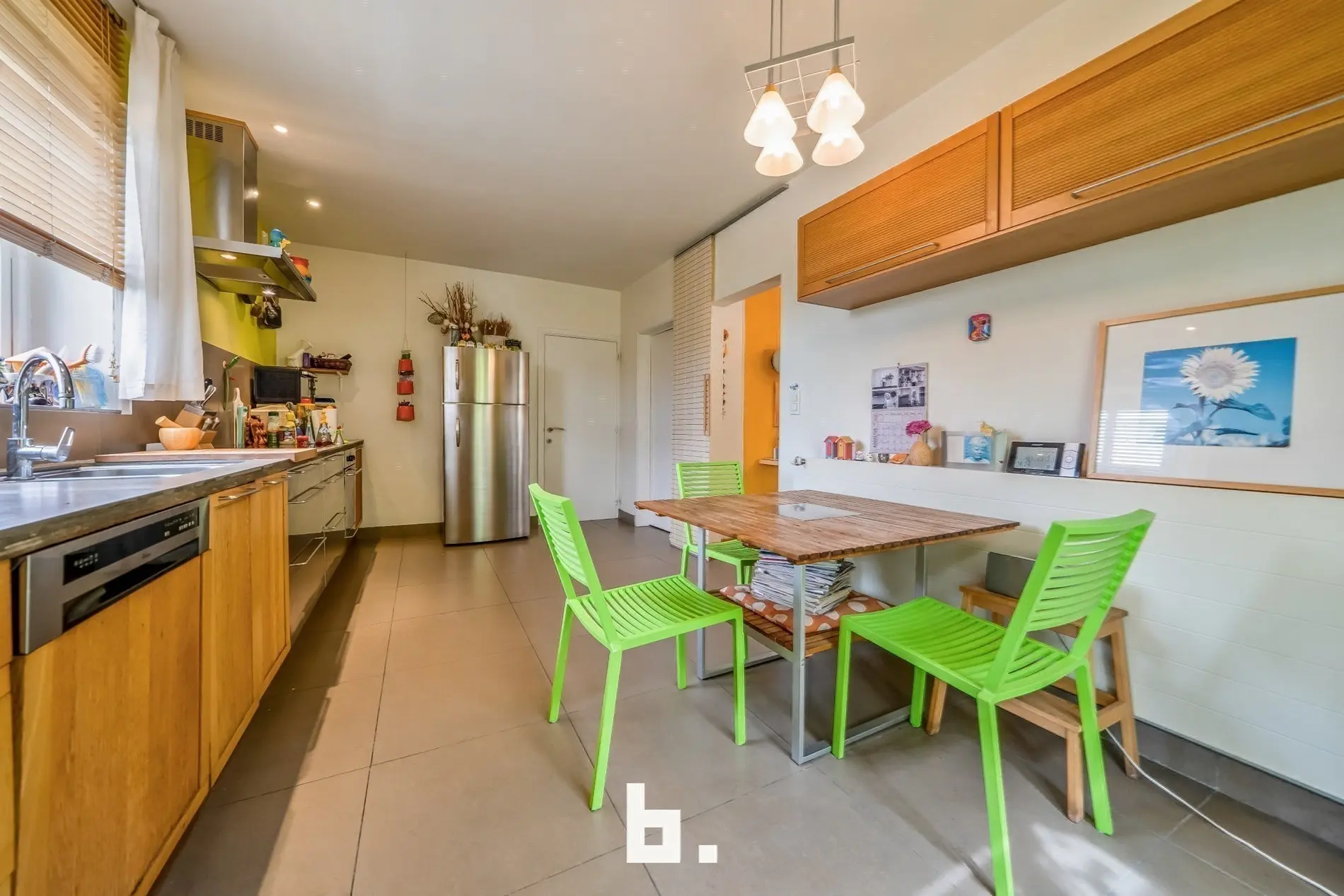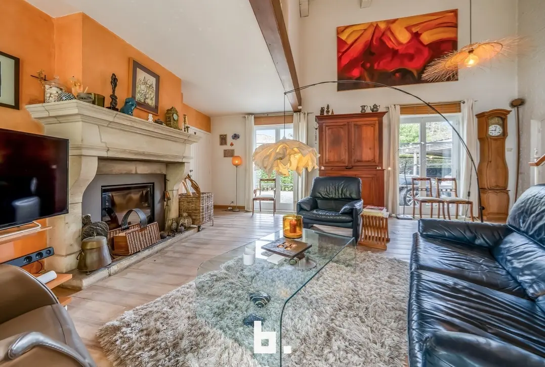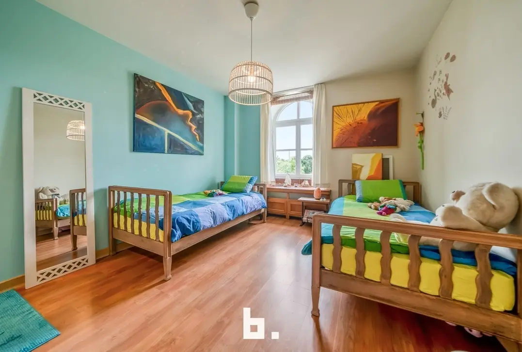 Een lange oprit leidt u naar deze bijzondere woning. Via de uitnodigende entree betreedt u een ruime, sfeervolle woonkamer met open traphal. Grote raampartijen laten het daglicht overvloedig binnen en bieden een prachtig uitzicht op de zonnige, verzorgde tuin. Aansluitend bevindt zich een lichtrijke eetkamer, perfect voor lange, gezellige diners, naast een royale aparte keuken die uitnodigt tot culinair genieten. Aan de inkom zijn bovendien een aparte technische ruimte en een gastentoilet voorzien. Op het gelijkvloers vindt u ook een veelzijdige kamer, momenteel ingericht hobbykamer. De eerste verdieping telt maar liefst vier ruime slaapkamers, een elegante badkamer, een aparte douchekamer en een afzonderlijk toilet – ideaal voor een groot gezin of gasten, lage zolderruimte