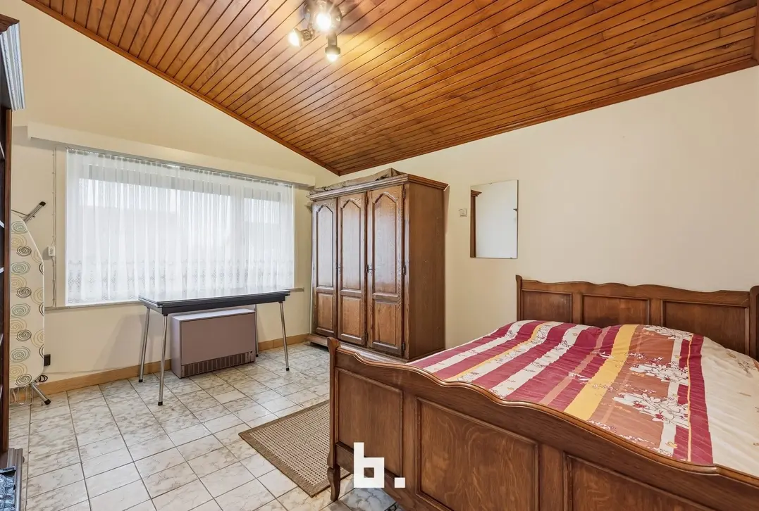 De woning kom je binnen via de inkomhal met gastentoilet, verder heb je de leefruimte met veranda en zicht op de tuin. Naast de woonkamer heb je nog de keuken met toegang tot de zeer ruime kelder/garage. Op het eerste verdiep zijn er twee slaapkamers en de badkamer. Op het tweede verdiep kan je de kinderkamer vinden. De toegankelijke zolder heeft extra bergruimte en doet momenteel dienst als sauna. De diepe oprit met poort komt uit in de tuin waar je gezellig kan zitten onder de pergola met zicht op de tuin met serre.