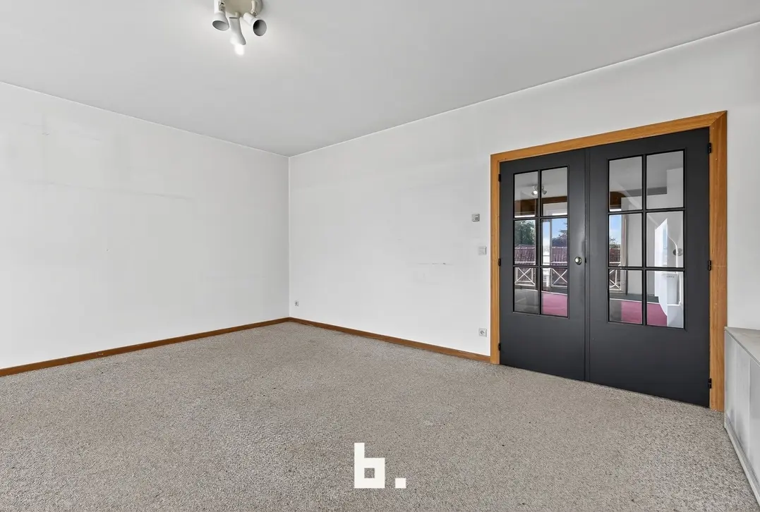 Bij het binnenkomen verwelkomt een ruime inkomhal met plaats voor vestiaire en apart gastentoilet je in stijl. De lichtrijke leefruimte met drie hoge raampartijen baadt in het zonlicht en biedt toegang tot een gezellig balkon.