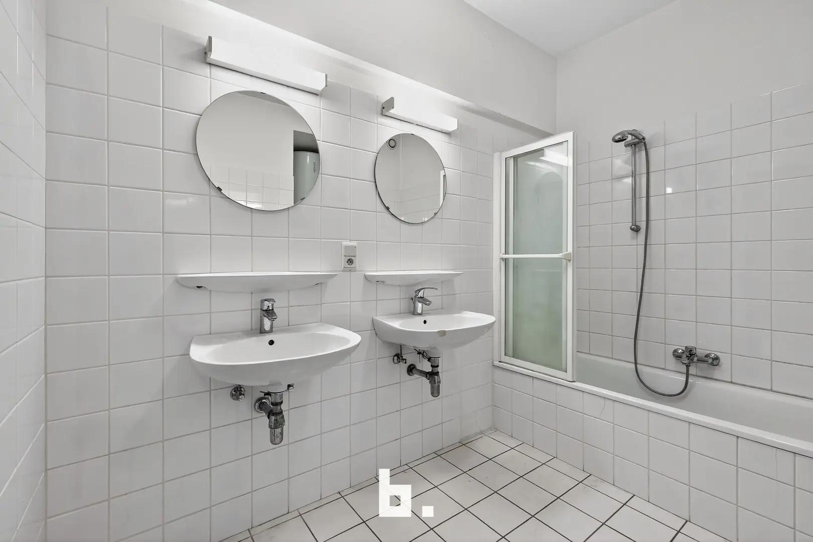 De badkamer is uitgerust met bad en dubbel lavabomeubel. Een aparte was- of bergruimte zorgt voor extra praktisch comfort.