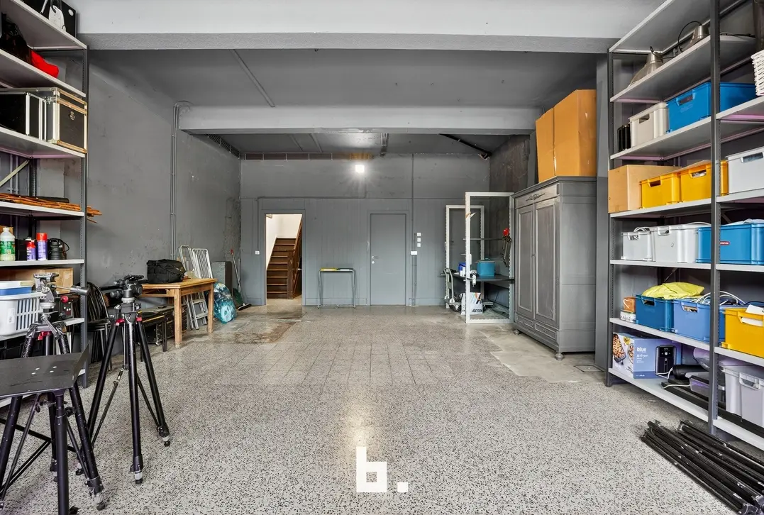 Op het gelijkvloers bevindt zich momenteel een stijlvolle fotostudio met kitchenette en sanitaire voorzieningen.