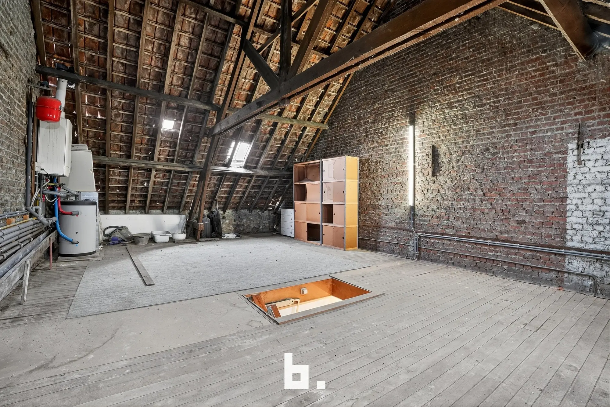 De ruime zolderverdieping biedt nog tal van mogelijkheden: extra slaapkamers, een atelier, een hobbyruimte of een ontspanningsplek — hier bepaal jij zelf de invulling.