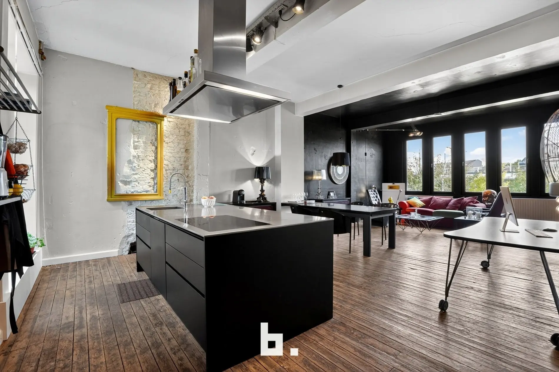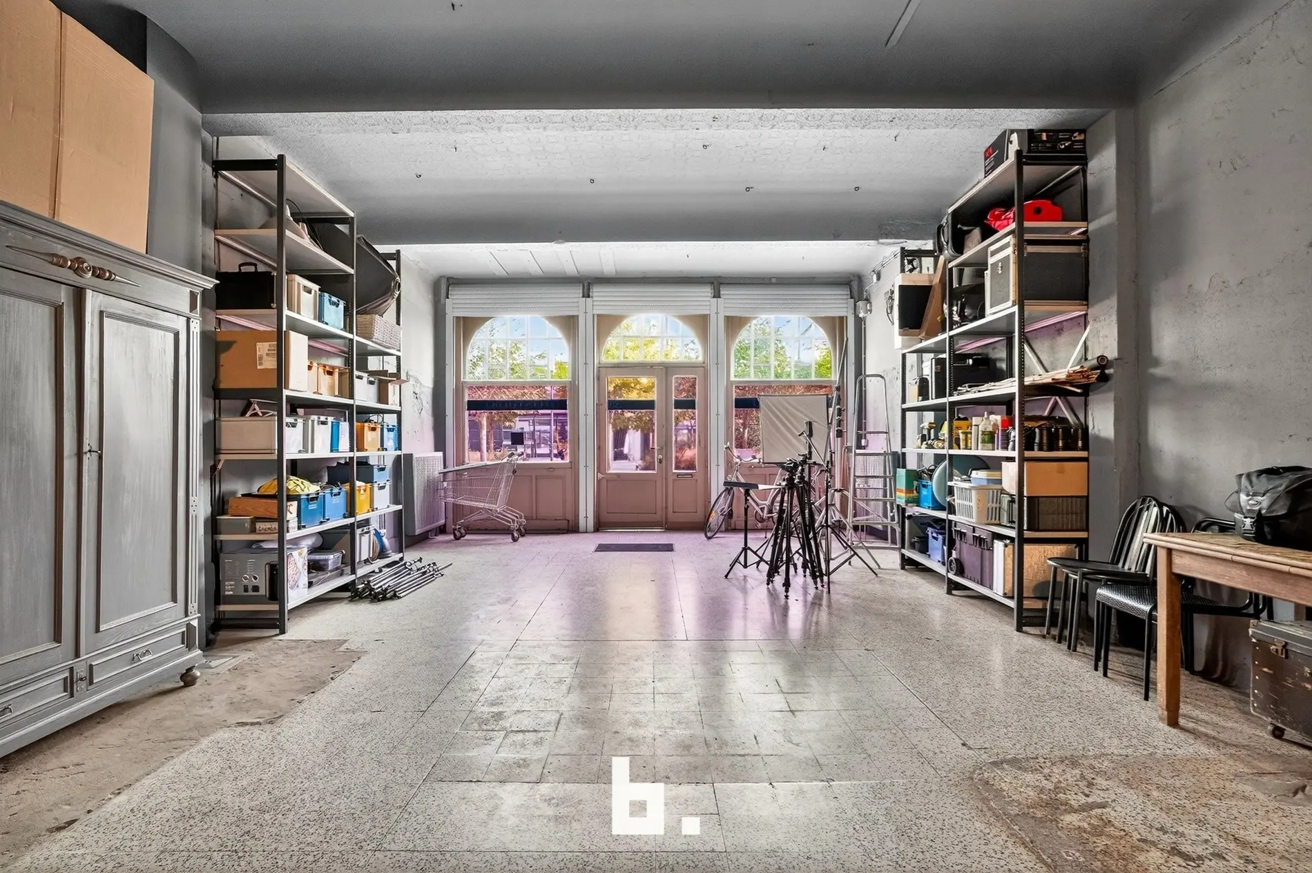 Dankzij de hoge plafonds, grote raampartijen en het open karakter is dit een inspirerende ruimte — ideaal voor zelfstandigen, kunstenaars of wie droomt van een unieke woon-werkcombinatie.