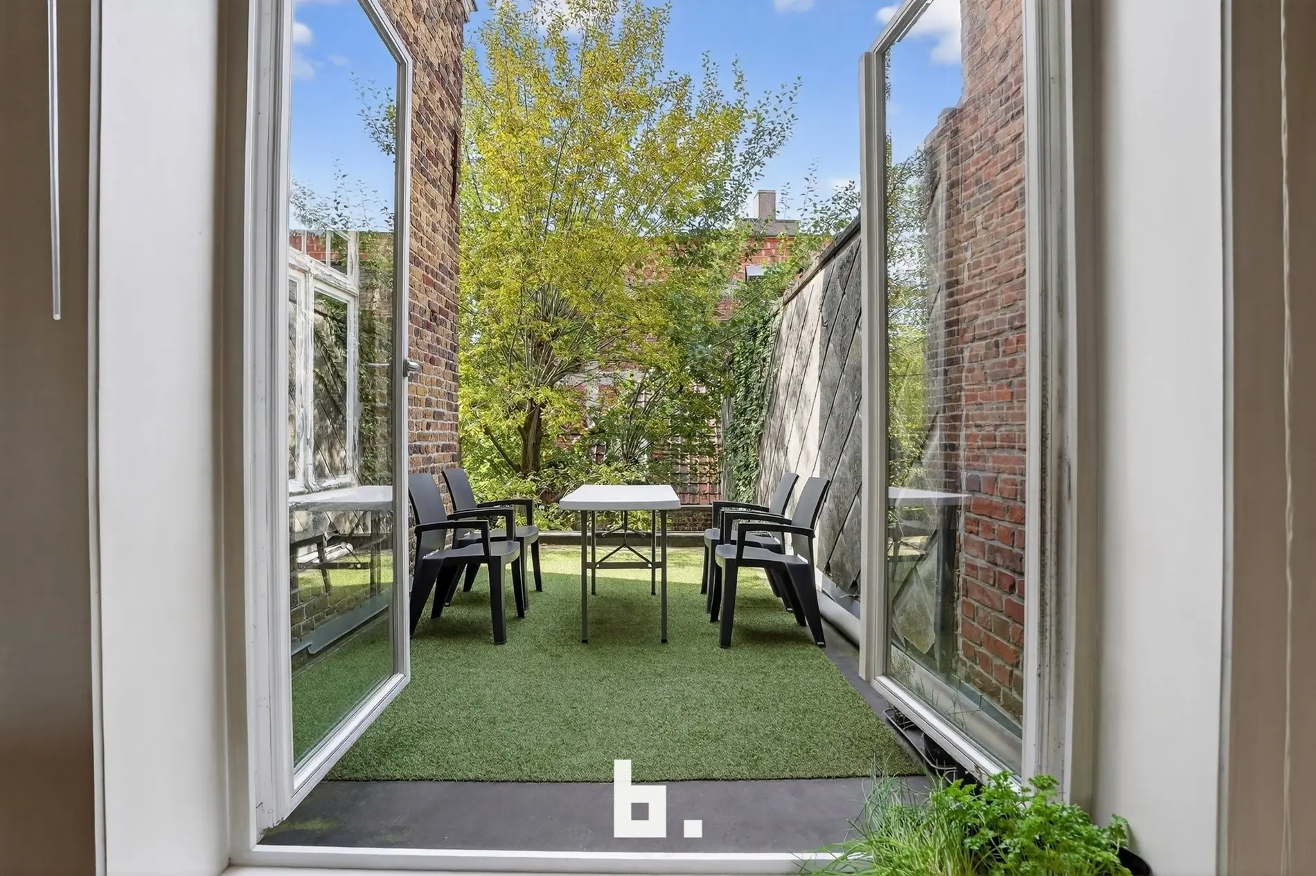 Een niveau lager wacht een gezellige stadstuin, met een sierlijke berk als groene blikvanger.