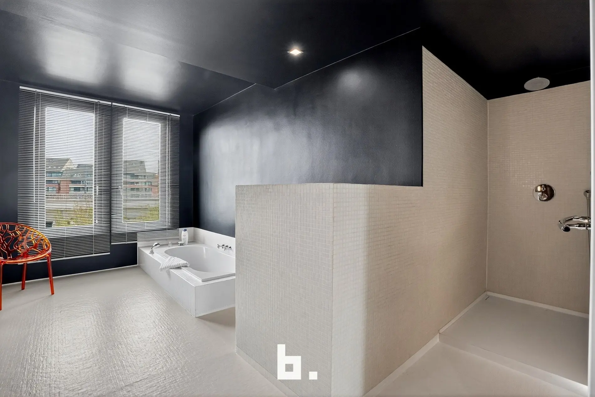 De tweede verdieping biedt een royale master bedroom met een badkamer die pure originaliteit uitstraalt: het verzonken ligbad is een subtiel statement van stijl en comfort.