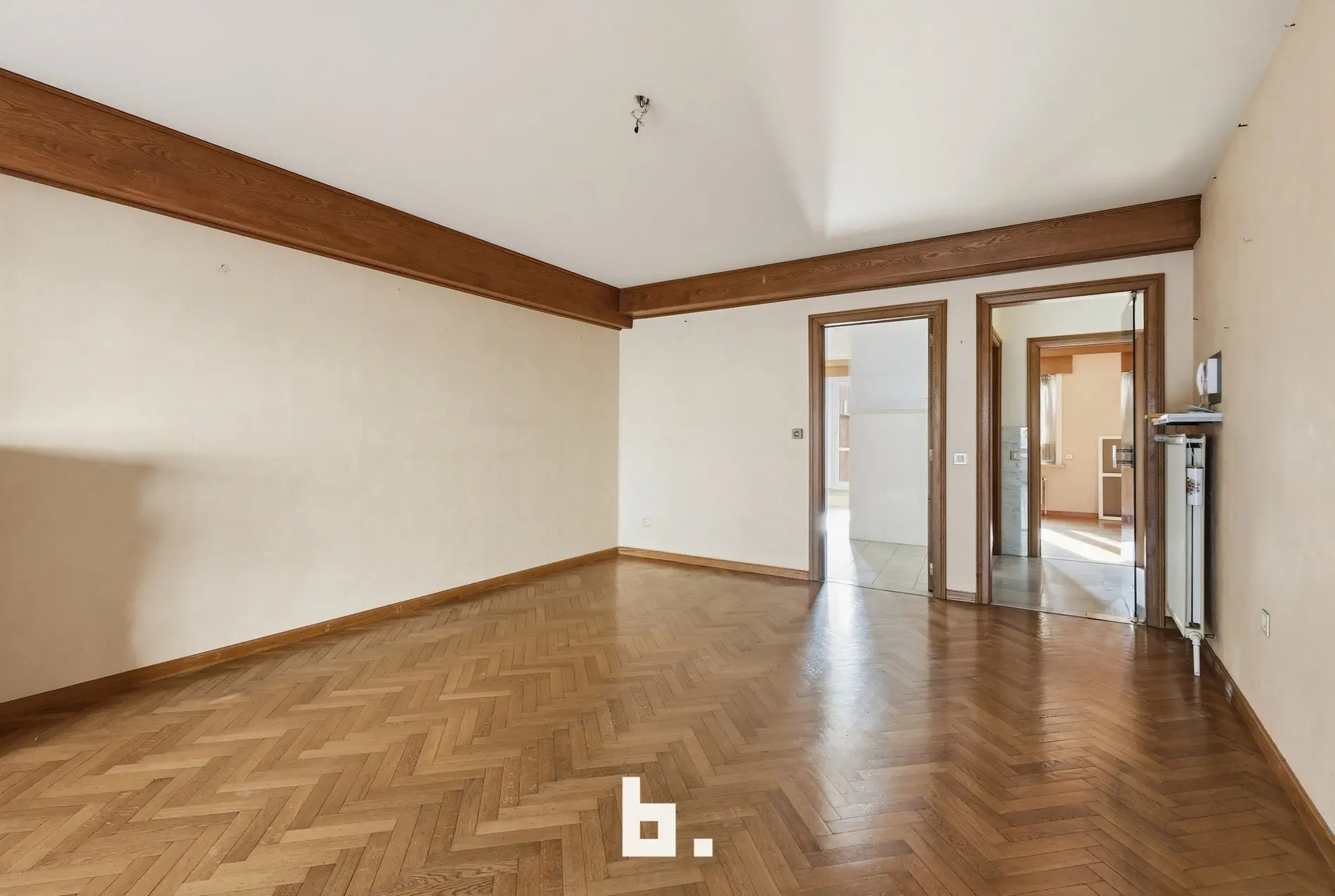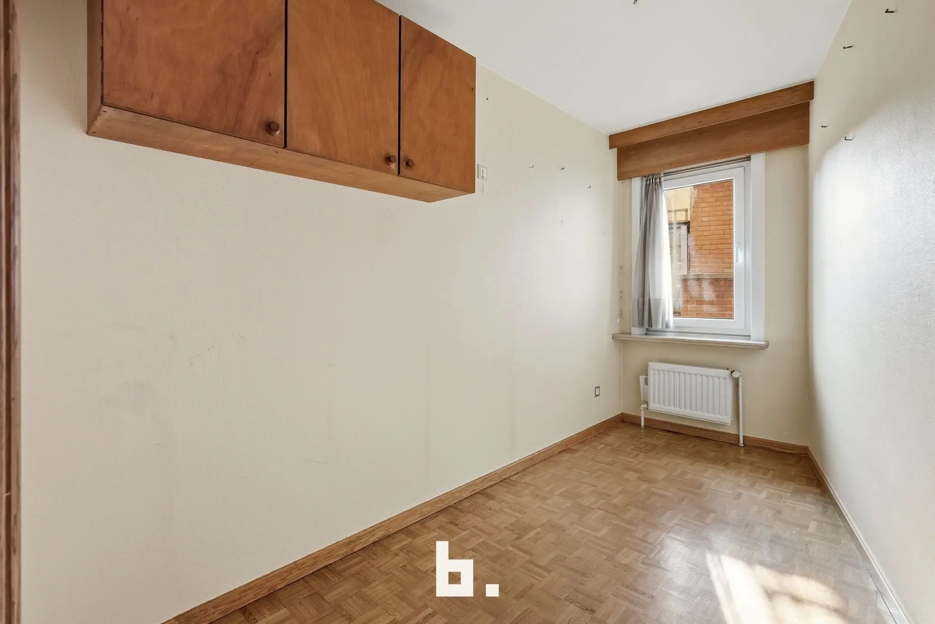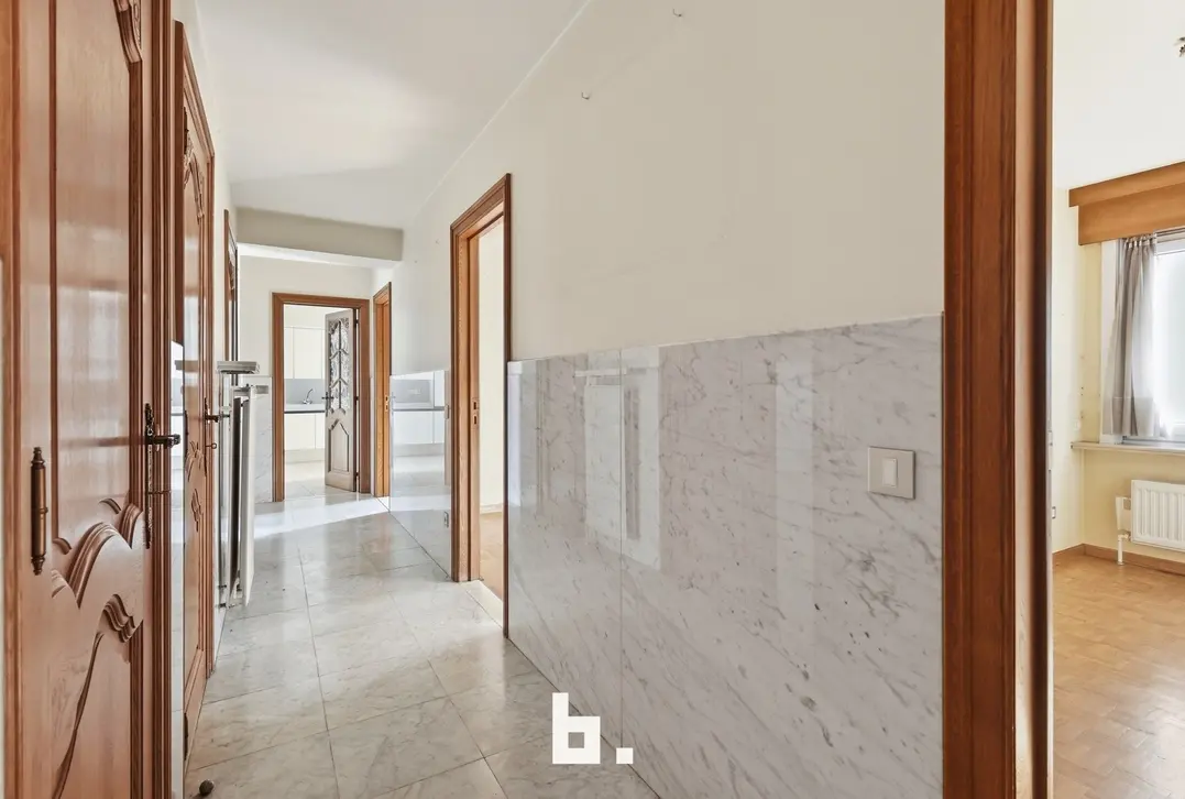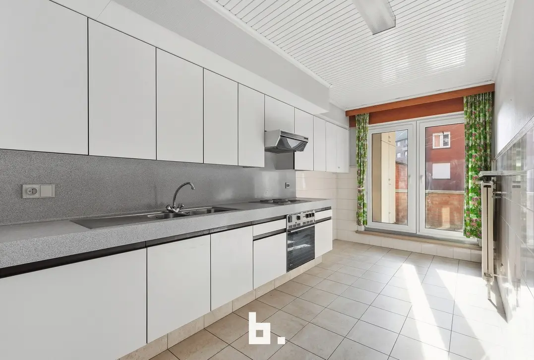 De leefruimte geniet van een aangename lichtinval en sluit naadloos aan op de keuken. Het appartement beschikt over drie slaapkamers, waardoor het perfect is voor gezinnen, investeerders of wie extra ruimte wenst (bureau/hobbyruimte).