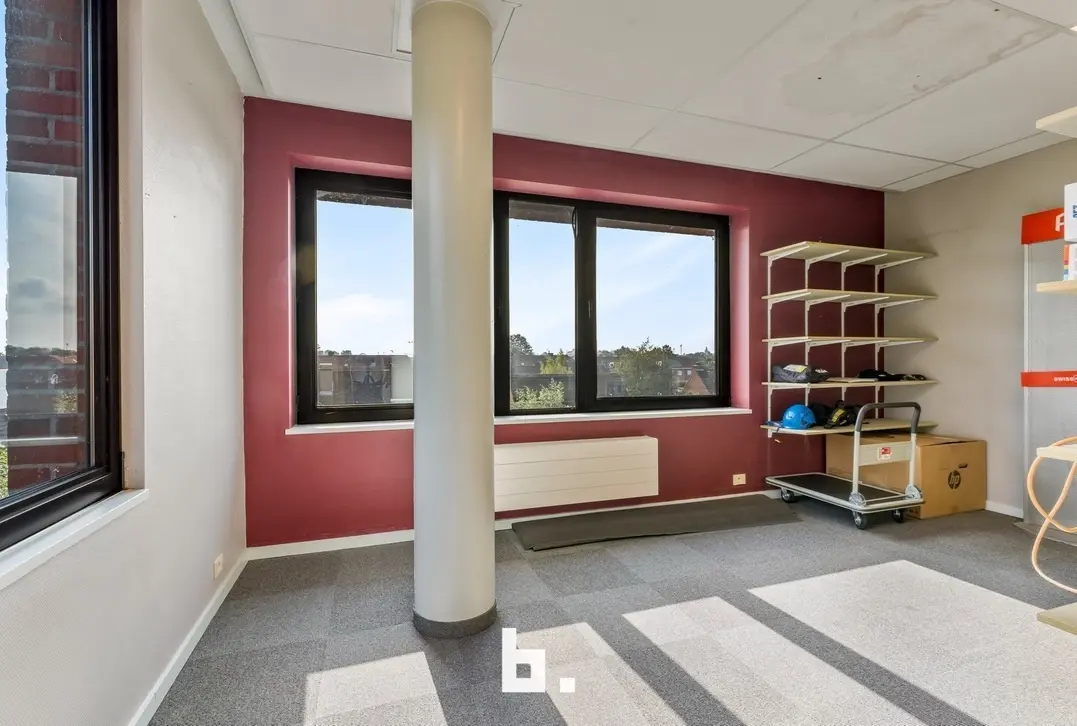 In het dynamische Clintonpark te Roeselare vindt u dit ruime en lichte kantoor van ca. 180 m², ideaal voor een bedrijf dat op zoek is naar een inspirerende werkplek. Deze kantoorruimte biedt dankzij de grote raampartijen een overvloed aan natuurlijk licht en een uniek uitzicht, wat bijdraagt aan een aangename werkomgeving.
